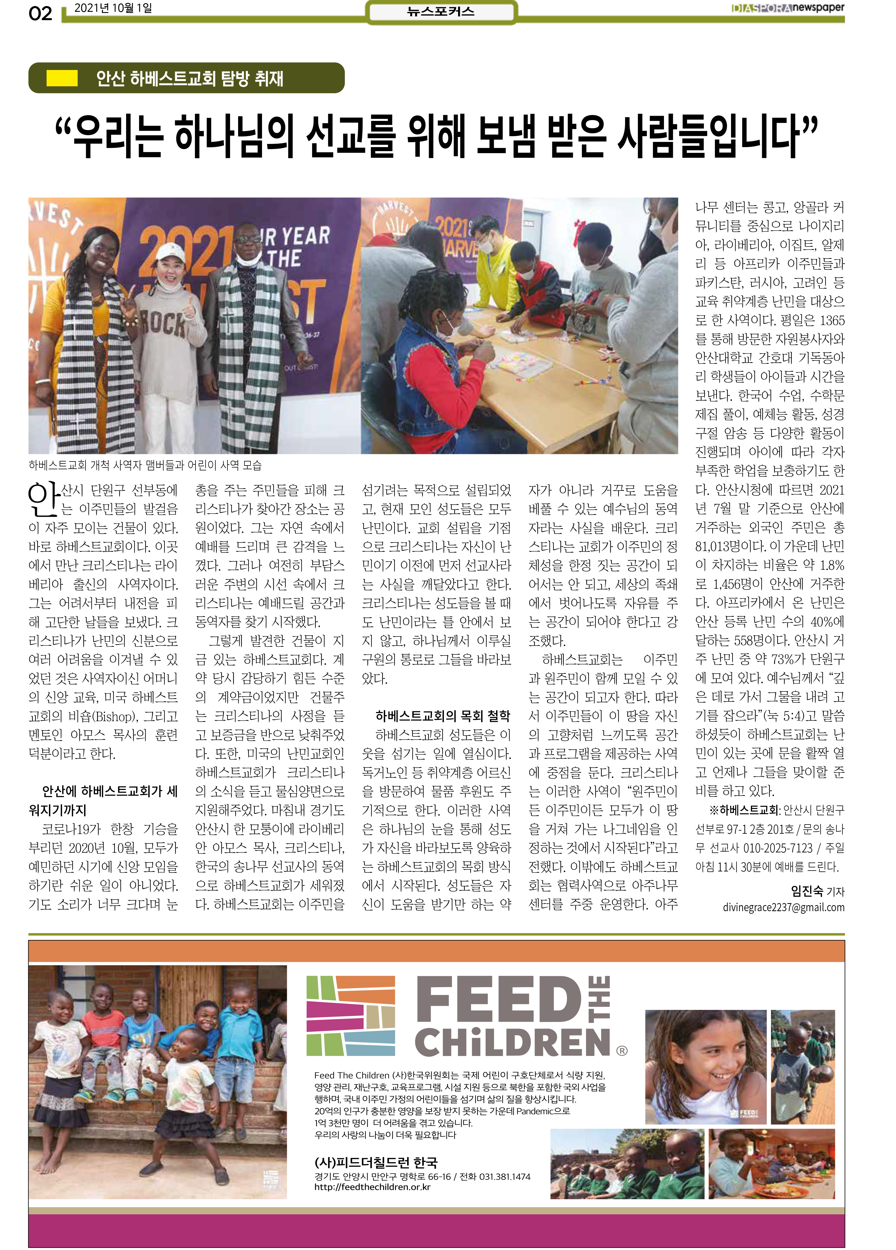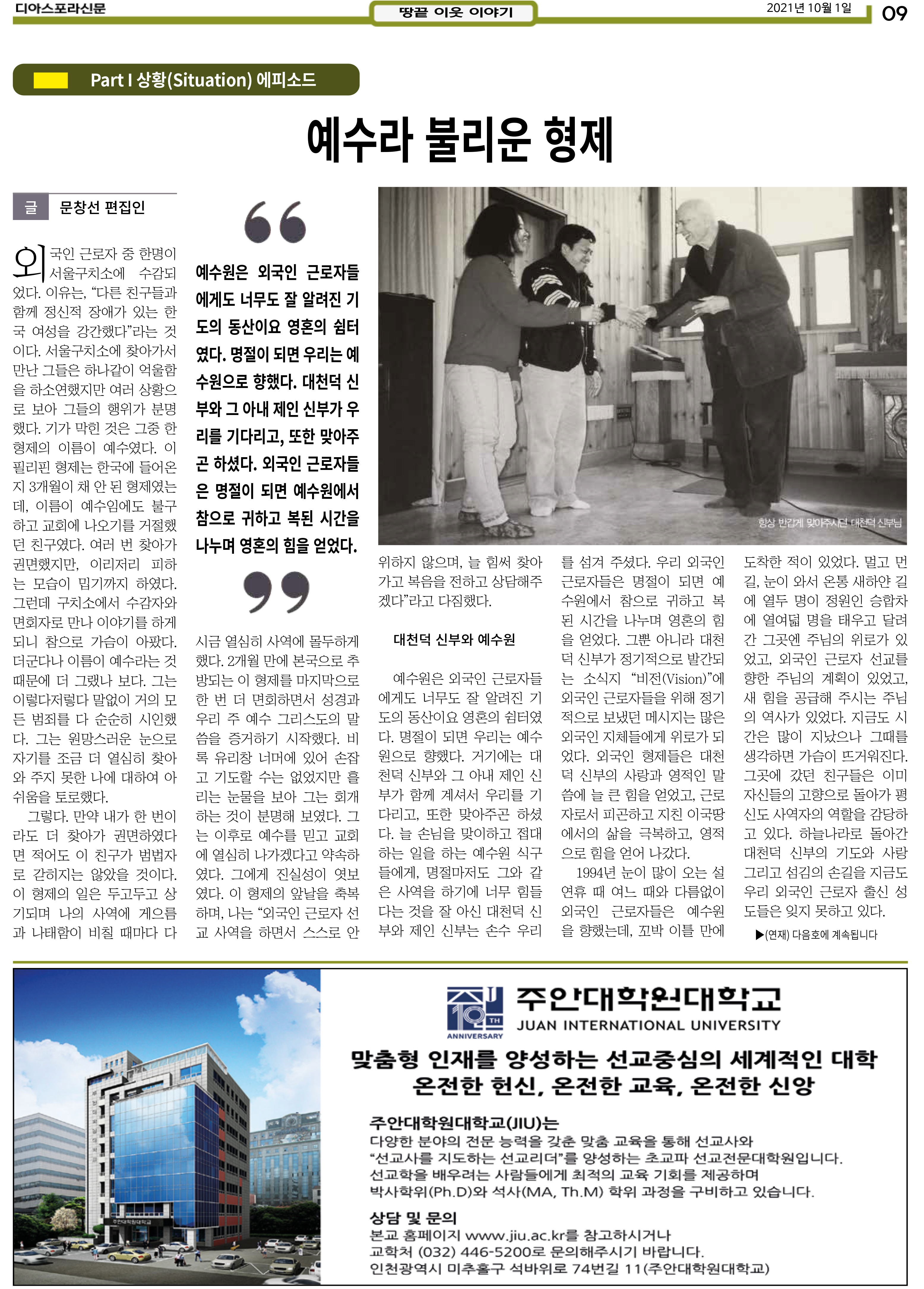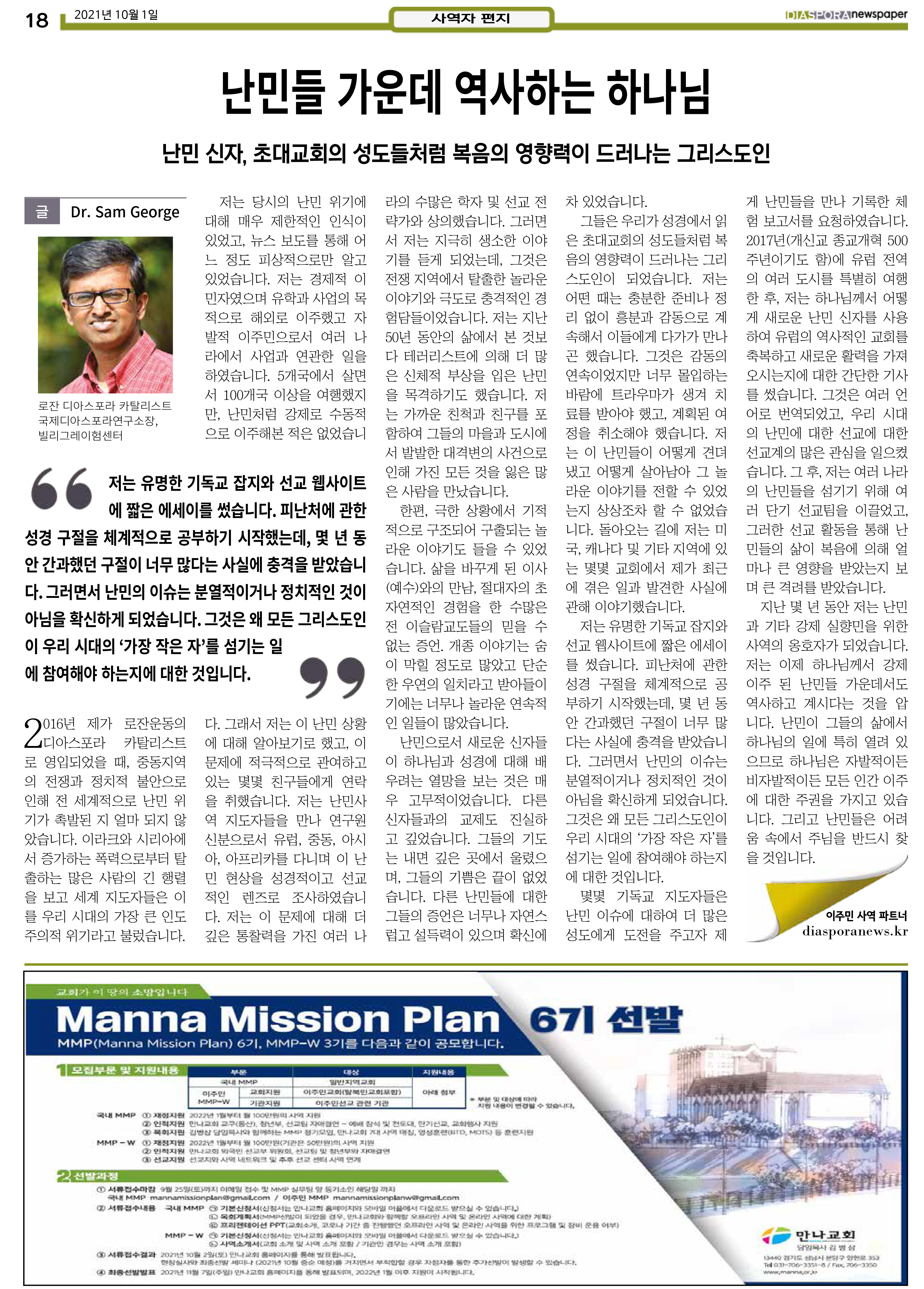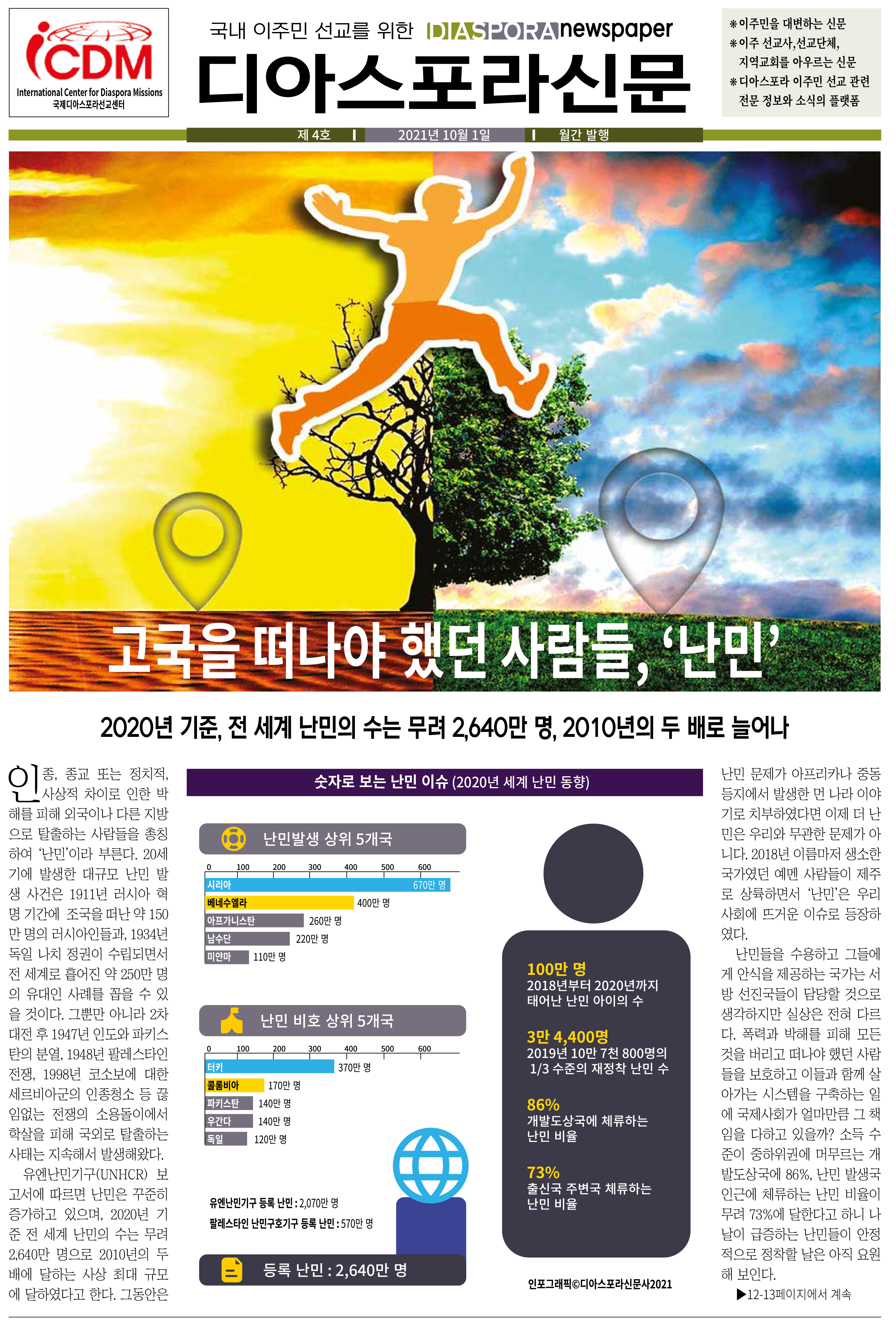 공지 [디아스포라신문] 제 4 호_2021년 10월_고국을 떠나야 했던 사람들, '난민' by 위디국제선교회1 2021. 10. 14. 제 4 호_2021년 10월_고국을 떠나야 했던 사람들, '난민' www.diasporanews.kr 공유하기 게시글 관리 WiThee Mission International 저작자표시 비영리 (새창열림) 관련글 MMTS 4P 2기 과정 [디아스포라신문] 제 5 호_2021년 11월_우리의 이웃은 모두 안녕하십니까? [디아스포라신문] 제 3 호_2021년 9월_이주민선교의 핵심 '환대' [디아스포라신문] 제 2 호_2021년 8월