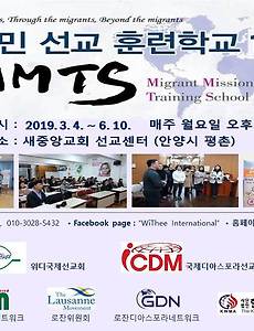 분류 전체보기805 ifmm 2020 제13회 국제이주자선교포럼 해마다 열리는 ‘국제이주자선교포럼(IFMM)’이 금년에는 코로나19 여파로 한 달 늦게 개최됩니다. 포럼 현장에는 발제자와 IFMM 핵심 사역자들만 참여하고, 유튜브로 온라인 생중계됩니다. ㅇ 일시 : 6월 22일 (월) 오전 10시부터 ㅇ 주제 : 코로나 이후 이주자 선교 ㅇ 발제자 : - 조샘 선교사(인터서브 대표) - 윤은성 목사(한국어깨동무사역원 대표) - 국내 이주민 사역자들 2020. 6. 18. MMTS 20기 훈련 2주차 이야기 이주민선교학교(MMTS) 20기 2주차 훈련이 2020년 6월 8일(월)에 있었습니다. 지난 첫 시간보다는 덜 긴장되고 조금 더 집중할 수 있는 시간이 된 것 같습니다. 1조의 예배인도를 시작으로 이주민을 위한 기도(주제: 유학생)를 함께 하였고, "한국 이주민 선교의 역사와 현황" 문창선 선교사님의 2주차 강의와 질의응답, 각 조별모임, 후속 조장모임이 있었습니다. 강의가 너무 짧게 느껴진다는 피드백이 있을 정도로 훈련생들의 열정과, 대면하지 못하는 조별모임으로 인한 아쉬움이 더욱 진하게 느껴지는 2주차였습니다. 2020. 6. 15. MMTS 20기 훈련 1주차 이야기 이주민선교학교(MMTS) 20기 훈련이 2020년 6월 1일(월) 시작되었습니다. 처음으로 하는 온라인 훈련이어서 모두가 떨리는 마음으로 첫 발걸음을 내딛었는데요, 아직은 어색하지만 모두가 의욕이 넘치는 시간이었습니다. 훈련생 38명과 조장 10명, 문창선 선교사님 외 스탭 분들이 함께 하셨습니다. "세계선교의 흐름과 이해" 문창선 선교사님의 강의와 질의응답, 오리엔테이션이 진행되었고 각 조별모임으로 자기소개 및 강의 나눔을 하였습니다. 첫 만남의 설레임과 오프라인으로 대면하지 못하는 아쉬움이 담긴 첫 날이었습니다. 1주차 훈련이 마치고 조장모임을 하며 첫 온라인훈련의 피드백과 다음 훈련을 준비하는 시간을 가졌습니다. 위기를 기회로 바꾸시고 전국에서 온라인으로 MMTS 20기를 모이게 하신 주님께 영광을.. 2020. 6. 10. MMTS(이주민선교학교) 20기 모집 이주민선교훈련학교/MMTS 20기 On Line 1992년 설립되어 이주민 근로자들을 섬기고 훈련시켜 현지 선교지로 역파송해 온 WiThee Mission Internatiional은 지난 2007년부터 이주민 선교 훈련 학교(MMTS)를 운영하며 이주민 선교 전문가를 많이 배출해 오고 있습니다. 이주민선교훈련학교(MMTS)는 이주민 선교에 관심이 있고, 이주민 선교 사역에 직·간접적으로 참여하기 원하는 누구나 참여 가능합니다. MMTS 강사는 이주민 사역 분야에서 활발하고 건강하게 사역을 감당하고 계시는 선교 활동가들과, 선교학 교수들이 감당합니다. 12주간 진행되는 강의 주제는, 이주민 선교의 상황과 이해, 대상과 방법, 적용과 성취 등이며, 선교 교육과 실체적 훈련을 동시에 실시합니다. 또한 이주자.. 2020. 5. 29. MMTS(이주민선교훈련학교) 19기 훈련생 모집 이주민선교훈련학교(MMTS; Migrant Mission Training School) 19기 훈련생을 모집합니다. MMTS는 위디국제선교회(WiThee Mission International)와 국제디아스포라선교센터(ICDM)가 공동으로 주최하고, Lausanne-GDN, KWMA, 한국이주민네트워크(KIN)가 함께하는 이주민선교 훈련 프로그램입니다. 이주민 사역 분야에서 활발하고 건강하게 사역을 감당하고 계시는 선교사님들이 강사로 수고하고 계시며, 이주민선교에 필요한 다양한 주제의 강의를 중심으로 국내 이주민 사역 연구, 이주민 포럼 참석, 이주민 전도 및 실습, 이주민 선교단체 탐방, 동영상 시청 등 다양한 프로그램이 준비되어 있습니다. MMTS는 이주민선교에 필요한 지식 및 경험을 듣는 교육과 실.. 2019. 1. 21. MMTS(이주민선교훈련학교) 강사 모집 위디국제선교회와 ICDM(국제디아스포라선교센터)가 공동 주관하는 MMTS(이주민선교훈련학교, Migrant Mission Training School)가 이주민을 섬기는 사역자를 양성 훈련할 강사님들을 모집합니다. MMTS는 로잔 디아스포라 GDN과 미국선교연합회 디아스포라 NextMove 그리고 한국세계선교연합회 KWMA가 인준하고 연합하는 이주민선교 훈련 프로그램입니다. 2007년에 시작하여 지금까지 12년간 18기에 걸쳐 약 350명의 이주민선교 사역자를 양성하며 국내 이주민사역의 초석을 다지는 데 기여해 왔습니다. 지역교회의 요청에 따라 운영하는 MMCS(이주민선교위탁훈련학교) 과정도 많은 사역자들을 배출해왔습니다. MMTS/MMCS가 배출한 이주민선교 사역자들은 대부분 독자적으로 운영하는 이주민.. 2019. 1. 21. 이전 1 ··· 37 38 39 40 41 42 43 ··· 135 다음