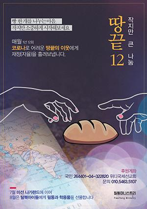 “지난 1월 이후 필통을 전달할 수 없는 상황이 되어, 방법으로 바꾸었습니다. 코로나로 어려운 전 세계 땅끝 선교지에 재정을 보내는 ‘땅끝12’ 사역을 지난 4월부터 시작했어요. 여기서 ‘12’는 일 년 ‘열두 달’ 선교지에 재정을 보내는 것뿐 아니라, ‘열두 달’을 ‘열두 제자’처럼 살자는 의미도 있습니다. 코로나로 한국도 힘들지만, 난민을 비롯하여 일자리가 없어 경제활동을 못하는 선교지 사람들은 너무나 힘든 상황입니다. 저는 이 사역이 교회 차원에서만이 아니라, 개개인이 생활 속에서 선교에 참여하는 ‘생활밀착형 선교’로 진행되면 좋겠습니다.