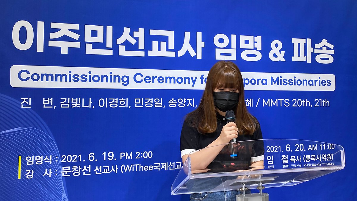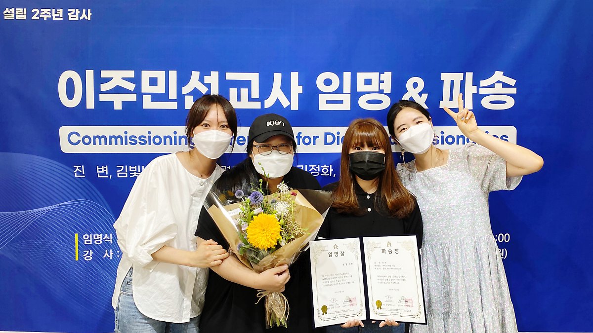 교회설립 2주년을 감사하며, MMTS 20기, 21기 수료한 교우들을 이주민선교사로 임명하였습니다. 진 자매는 본국과 WiThee국제선교회의 이주민선교사로 파송하였습니다. 나무아래 이주민 선교사들을 통해 복음을 듣고 새생명을 얻게 될 많은 이주민들을 기대하게 됩니다. 함께 기도해주세요.