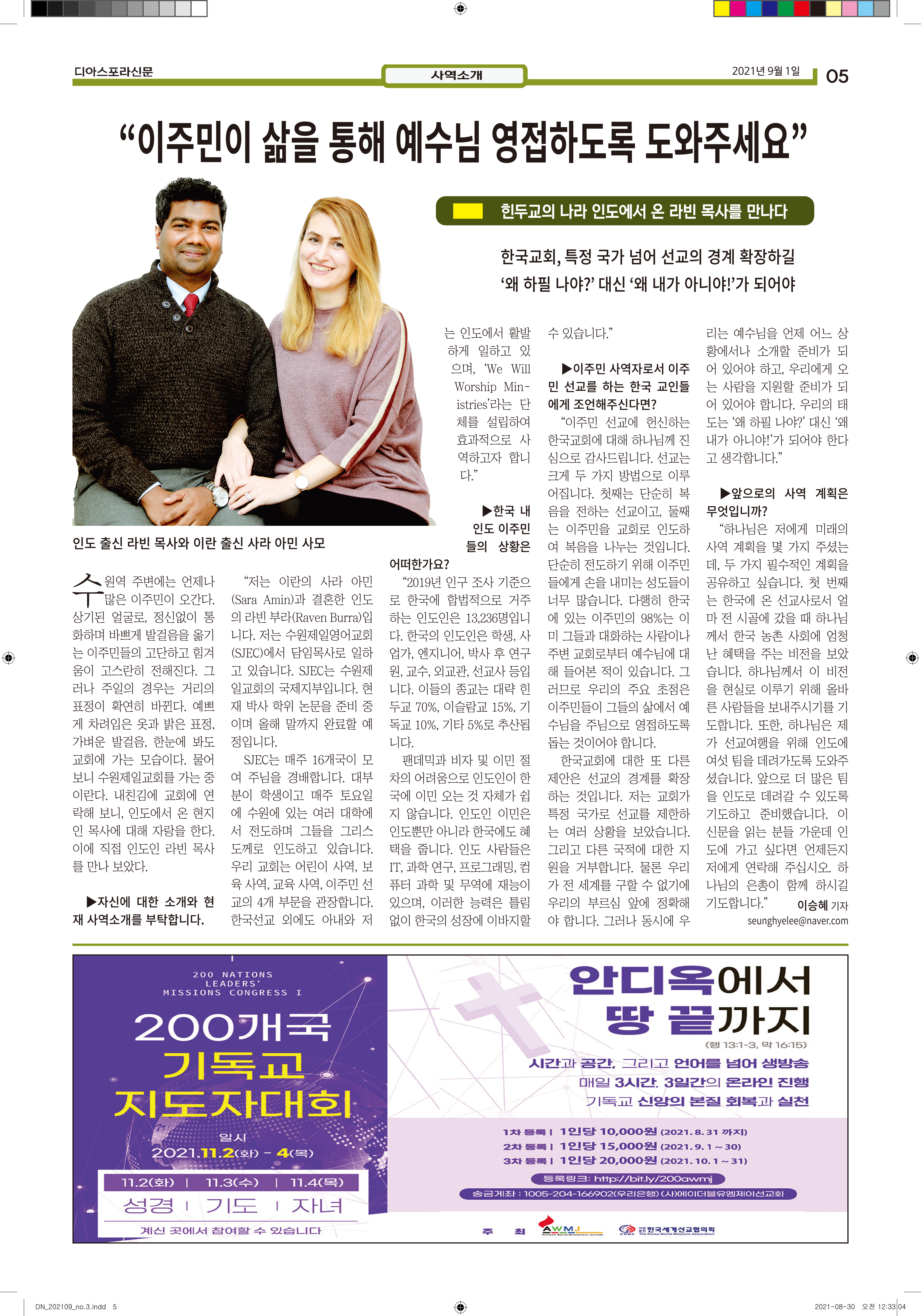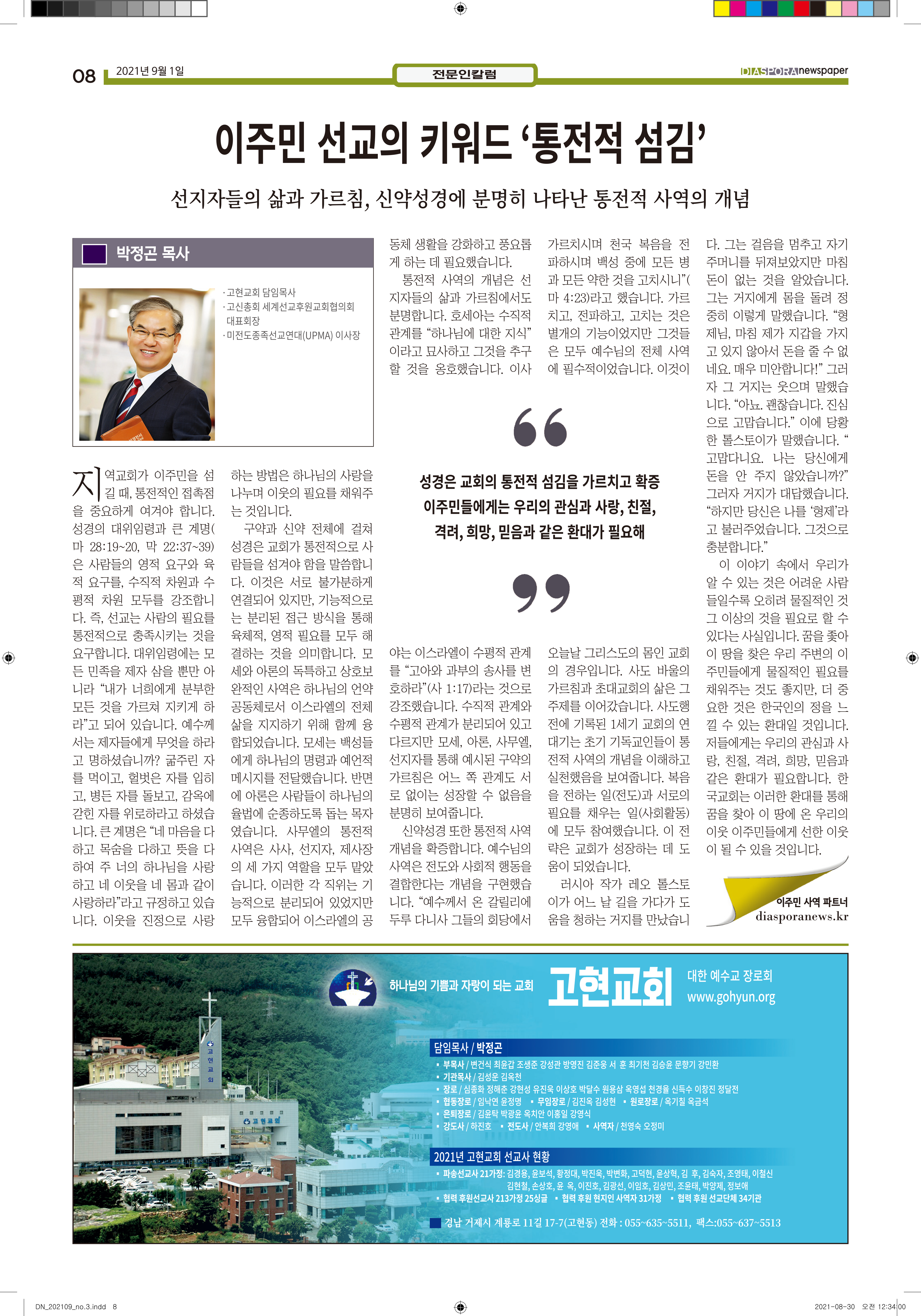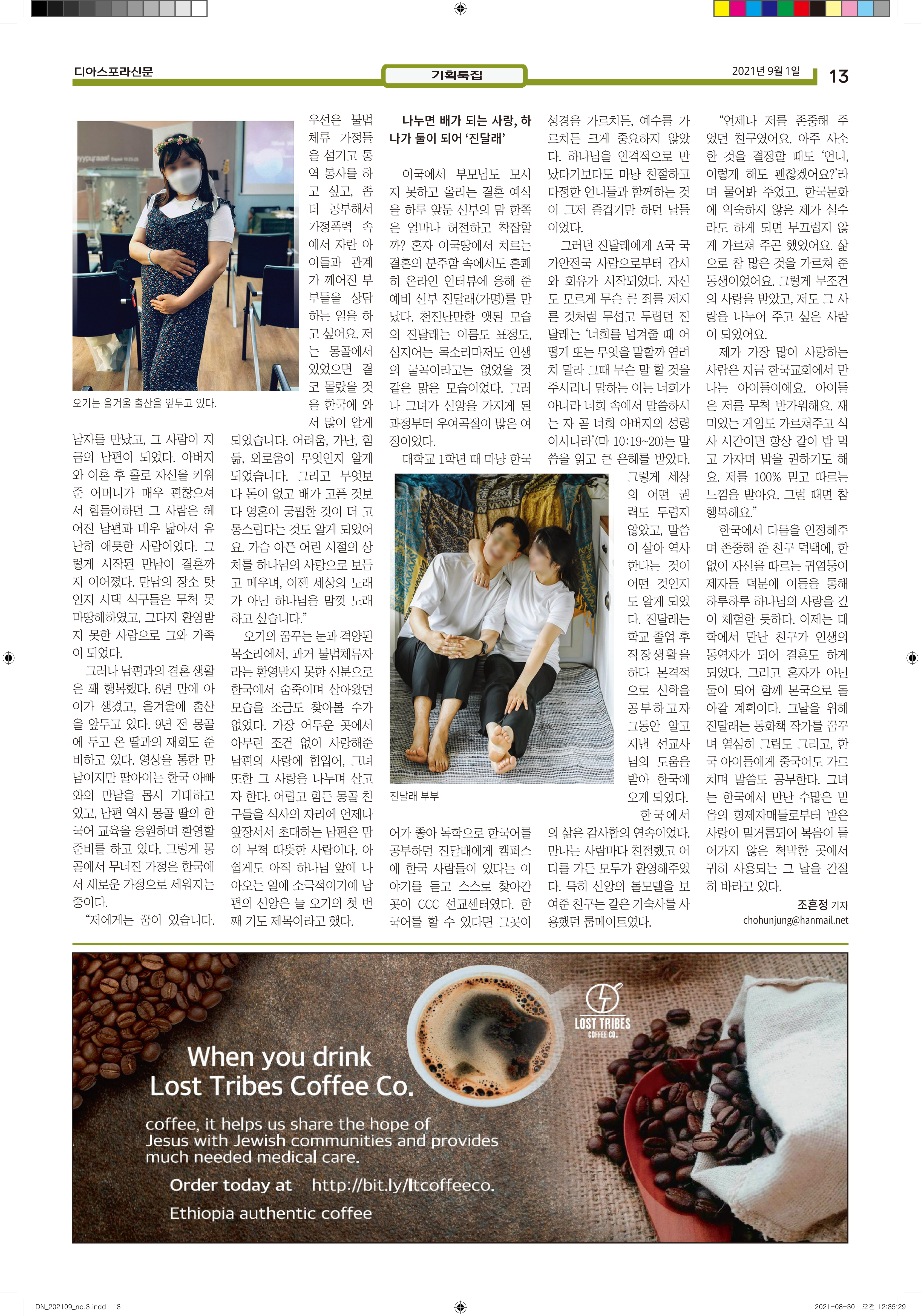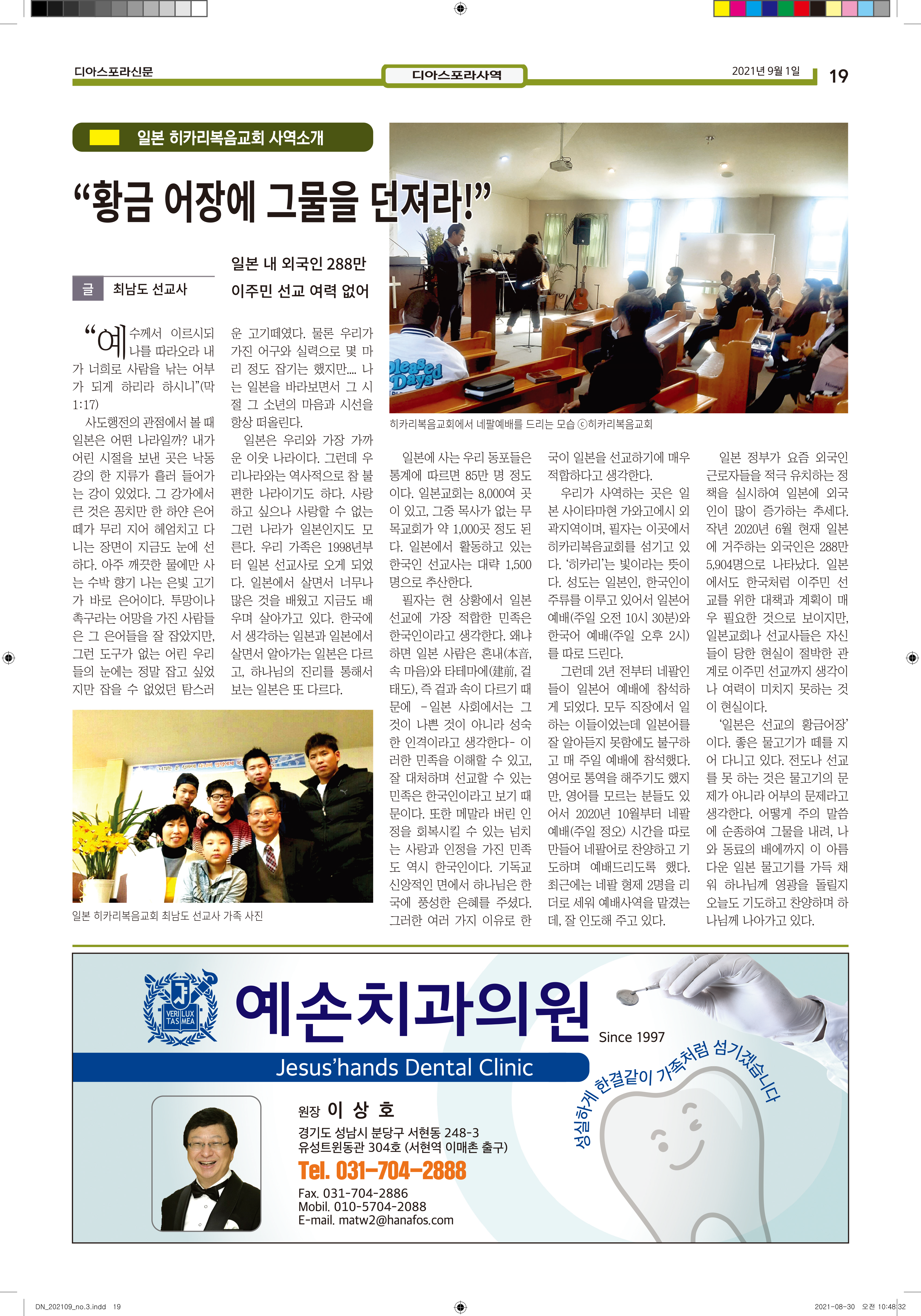 공지 [디아스포라신문] 제 3 호_2021년 9월_이주민선교의 핵심 '환대' by 위디국제선교회1 2021. 9. 2. 공유하기 게시글 관리 WiThee Mission International 저작자표시 비영리 (새창열림) 관련글 [디아스포라신문] 제 5 호_2021년 11월_우리의 이웃은 모두 안녕하십니까? [디아스포라신문] 제 4 호_2021년 10월_고국을 떠나야 했던 사람들, '난민' [디아스포라신문] 제 2 호_2021년 8월 로잔 글로벌 디아스포라 서밋 2021