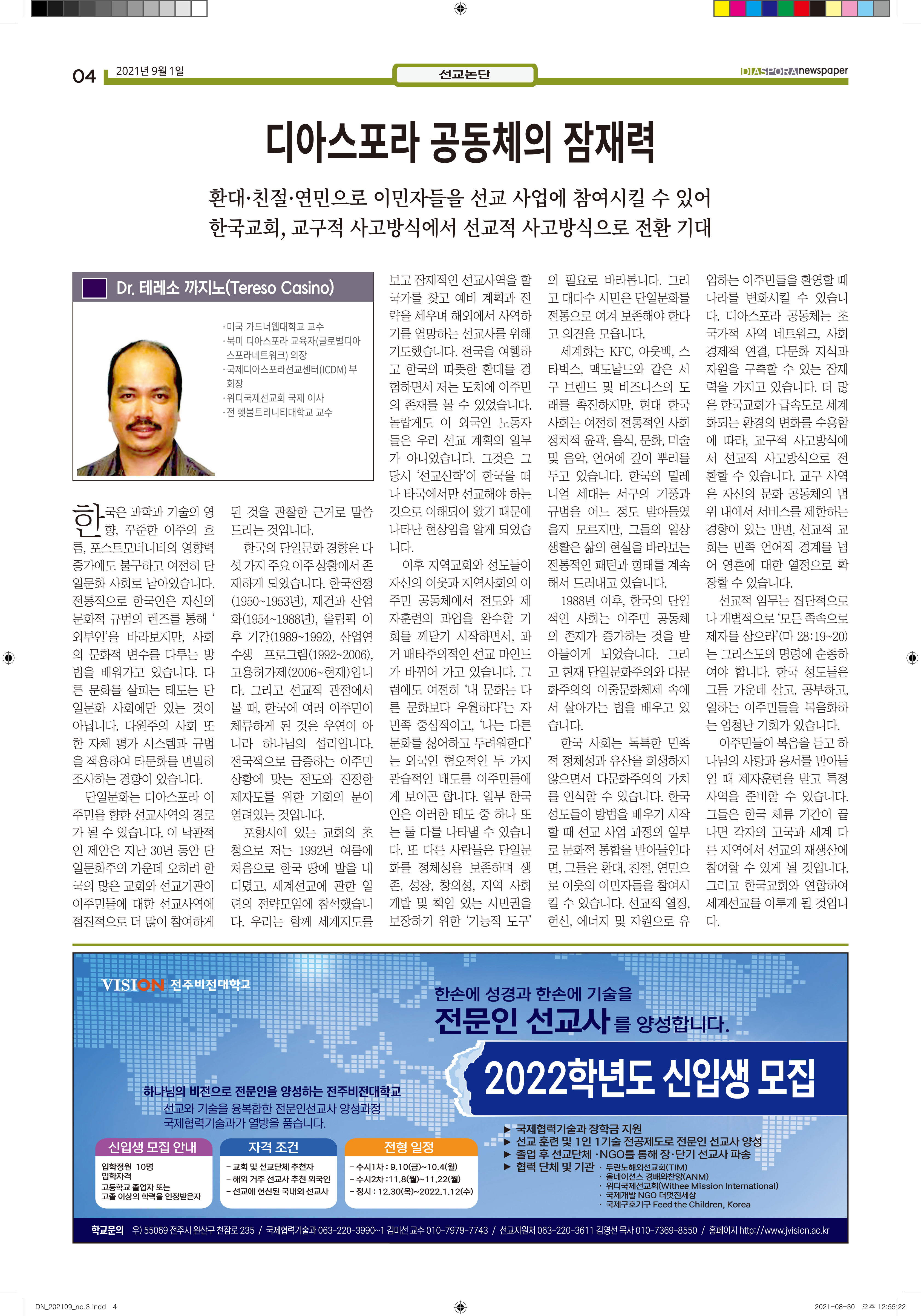 공지 [디아스포라신문] 제 3 호_2021년 9월_이주민선교의 핵심 '환대' by 위디국제선교회1 2021. 9. 2. 공유하기 게시글 관리 WiThee Mission International 저작자표시 비영리 (새창열림) 관련글 [디아스포라신문] 제 5 호_2021년 11월_우리의 이웃은 모두 안녕하십니까? [디아스포라신문] 제 4 호_2021년 10월_고국을 떠나야 했던 사람들, '난민' [디아스포라신문] 제 2 호_2021년 8월 로잔 글로벌 디아스포라 서밋 2021