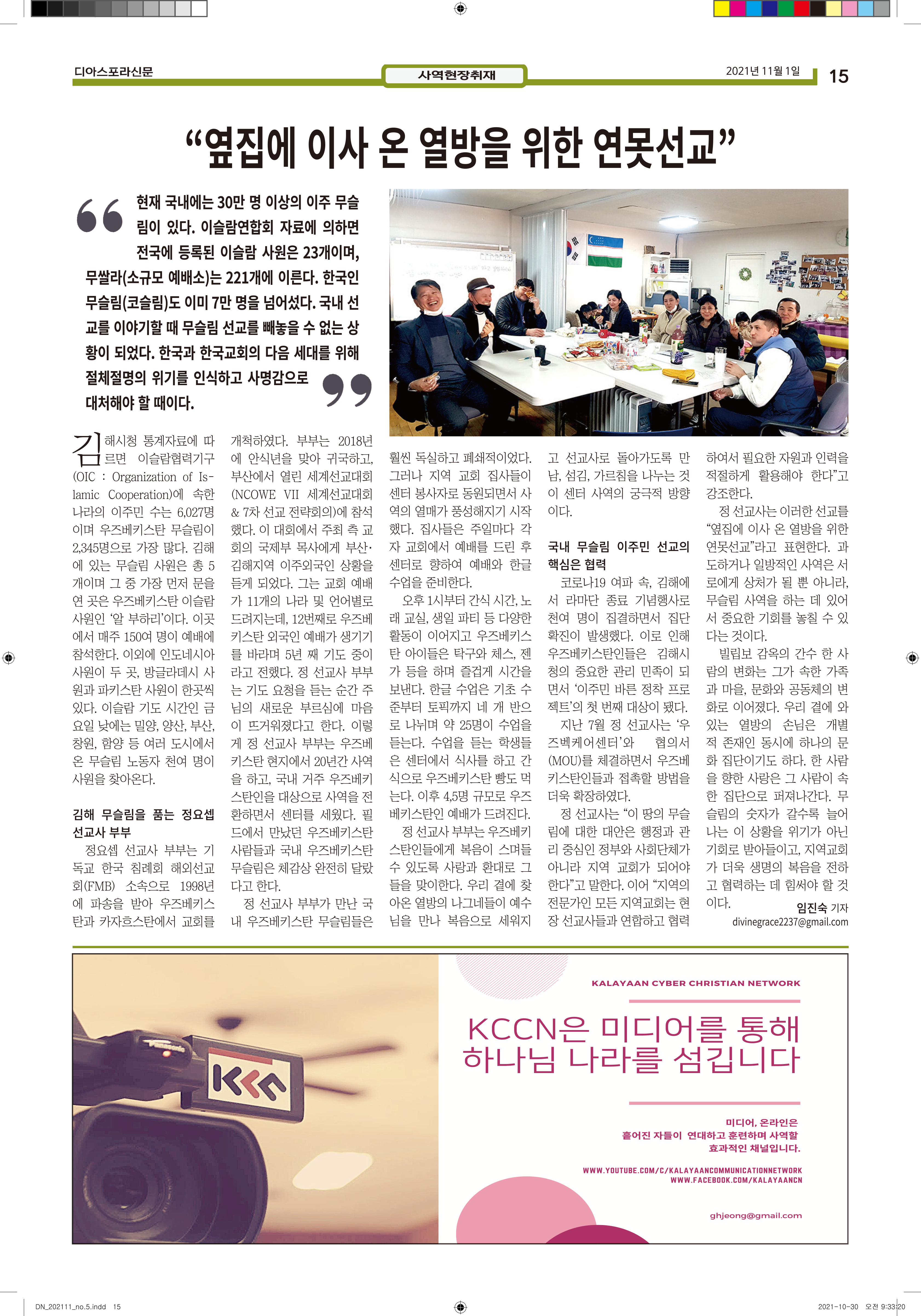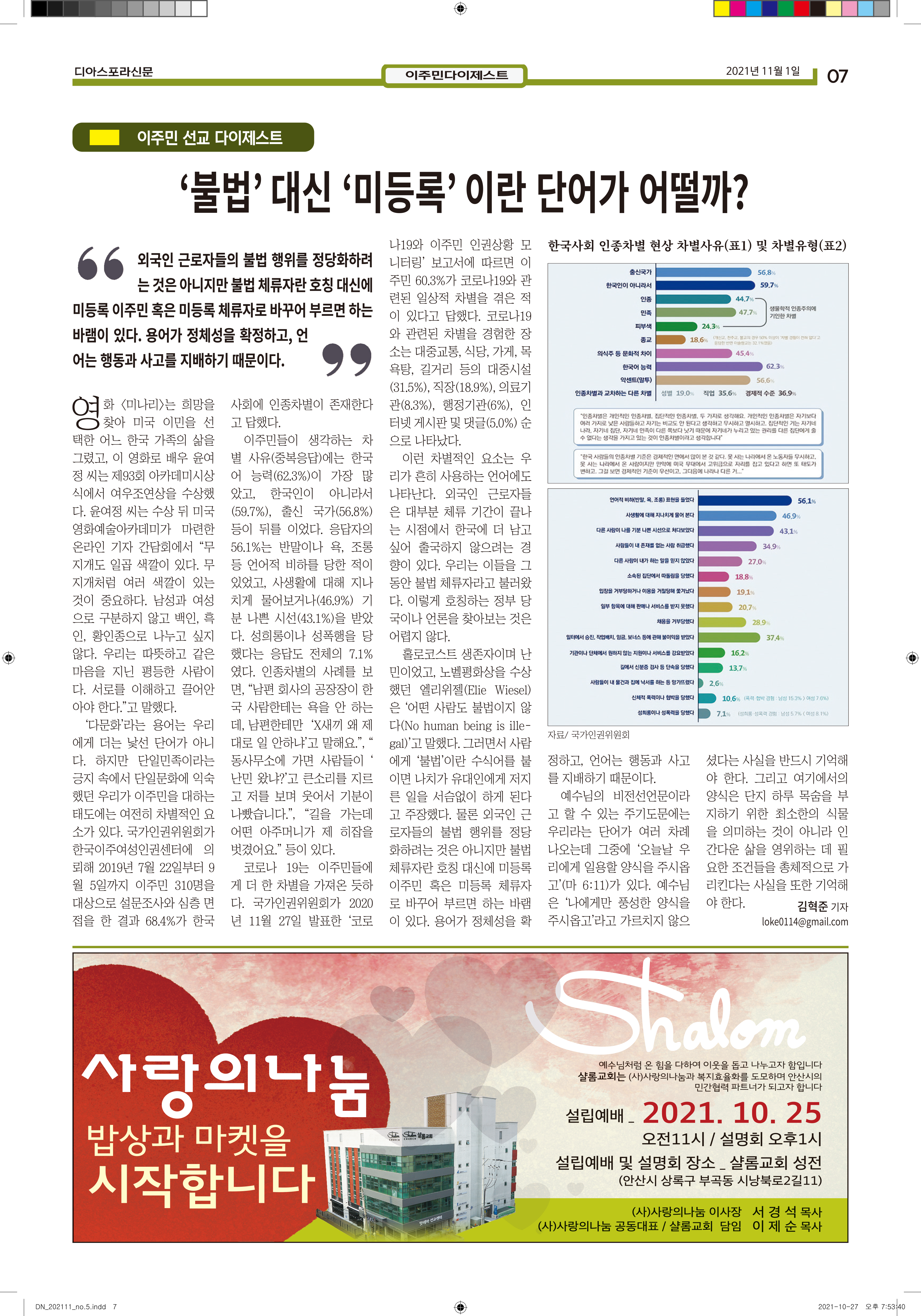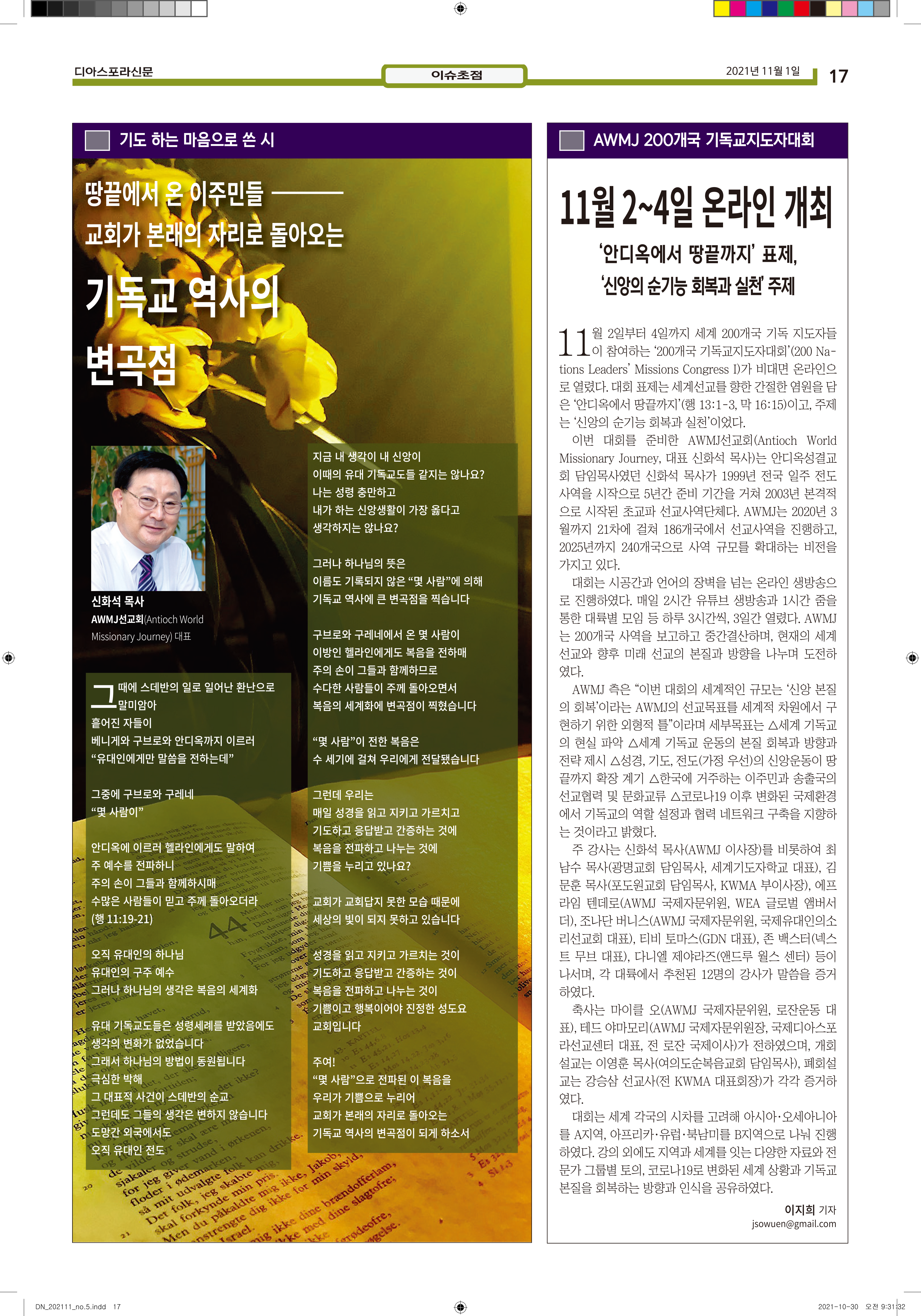 공지 [디아스포라신문] 제 5 호_2021년 11월_우리의 이웃은 모두 안녕하십니까? by 위디국제선교회1 2021. 11. 11. 제 5 호_2021년 11월_우리의 이웃은 모두 안녕하십니까? www.diasporanews.kr 공유하기 게시글 관리 WiThee Mission International 저작자표시 비영리 (새창열림) 관련글 missionNaga2022 MMTS 4P 2기 과정 [디아스포라신문] 제 4 호_2021년 10월_고국을 떠나야 했던 사람들, '난민' [디아스포라신문] 제 3 호_2021년 9월_이주민선교의 핵심 '환대'