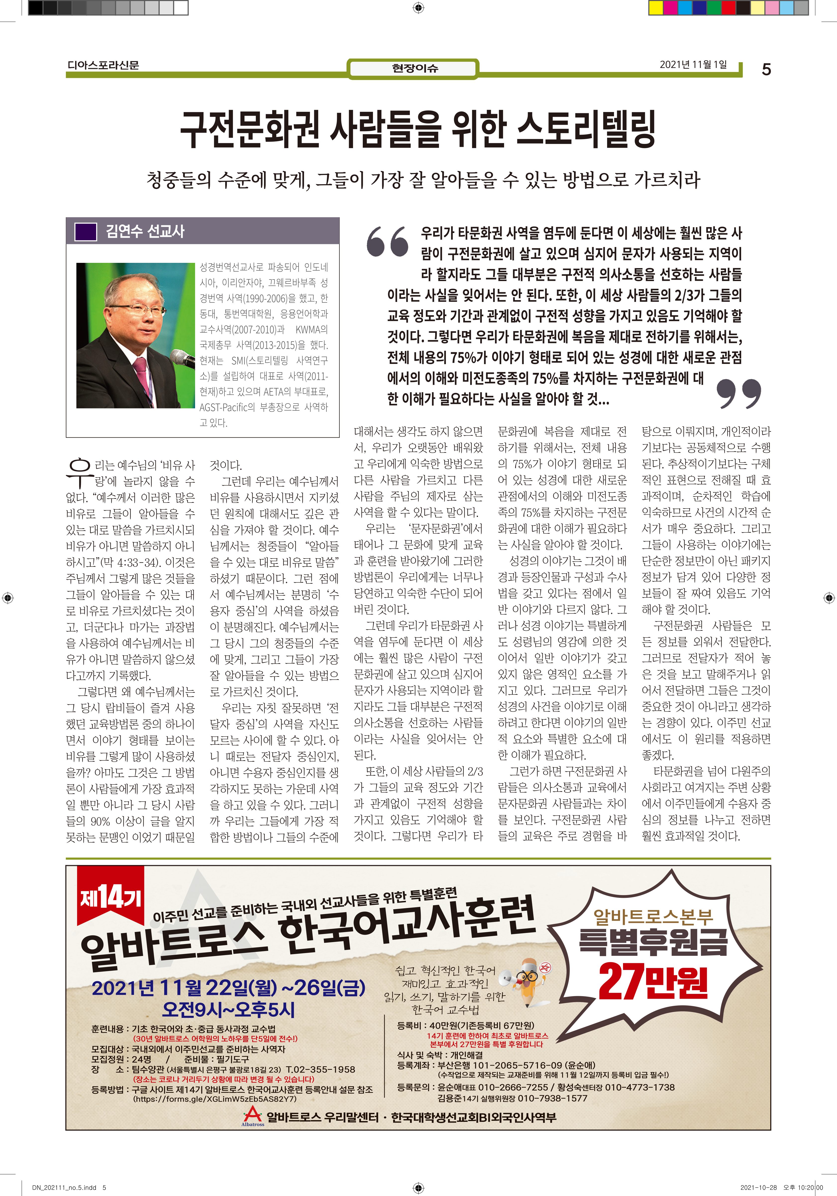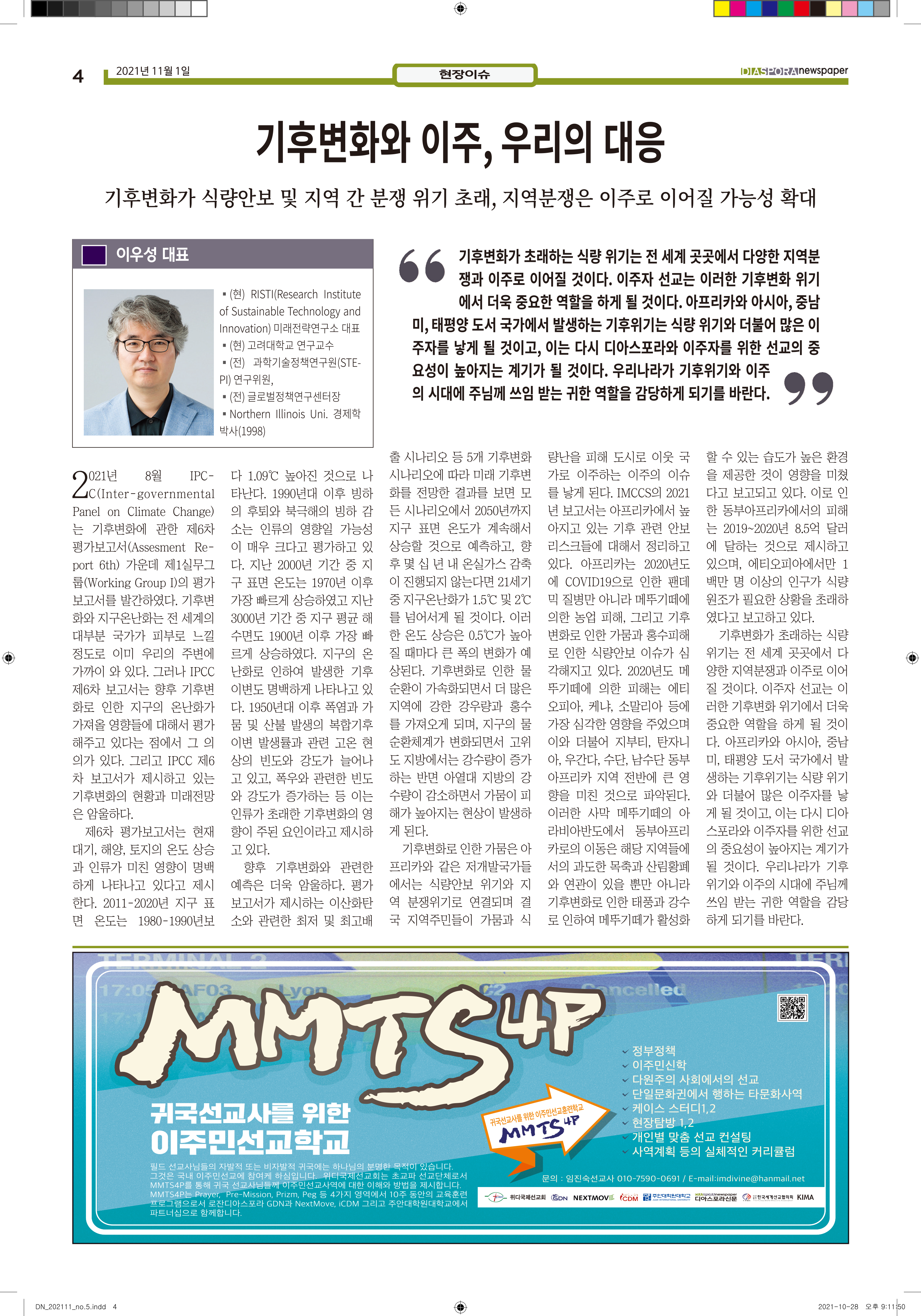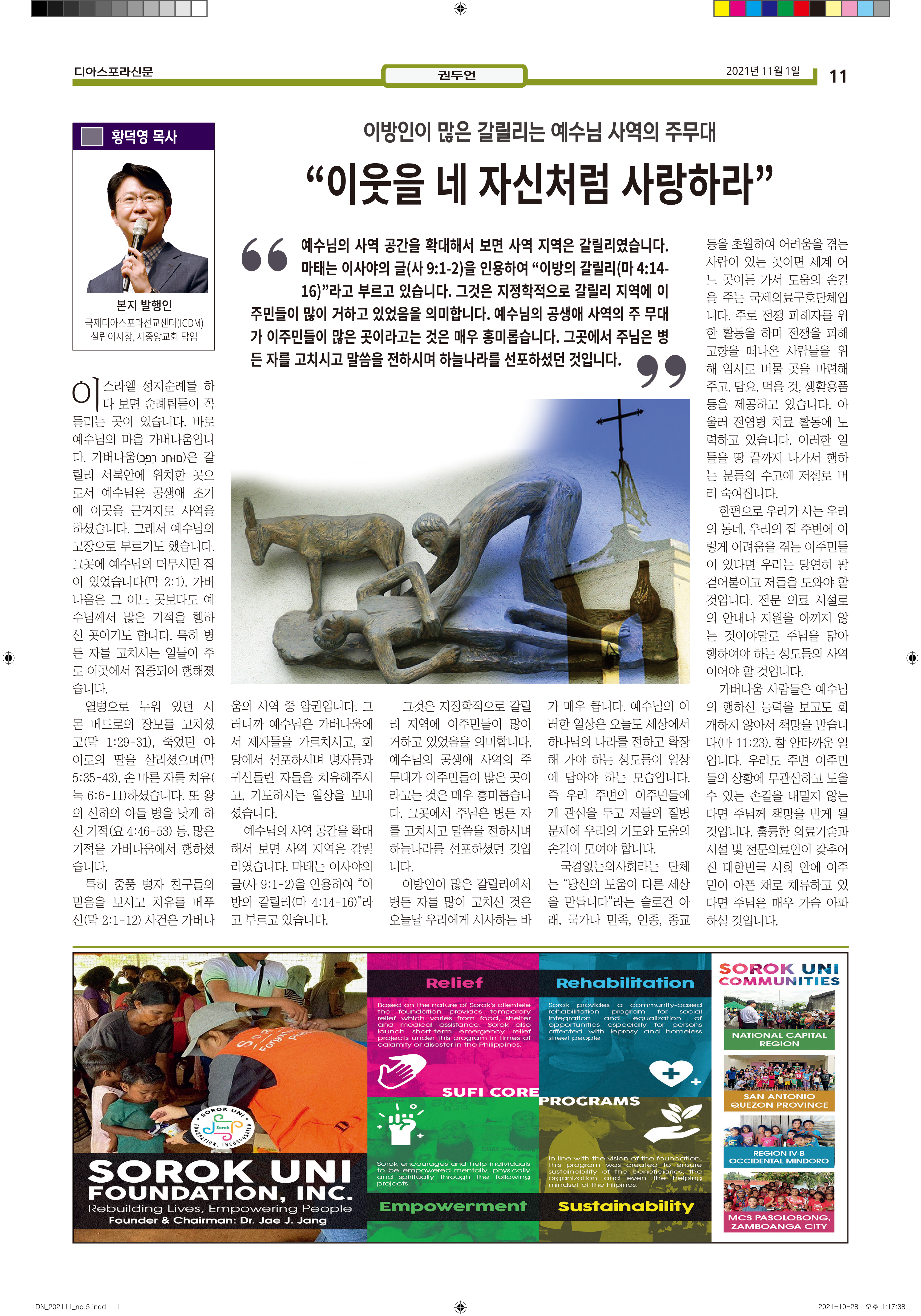 공지 [디아스포라신문] 제 5 호_2021년 11월_우리의 이웃은 모두 안녕하십니까? by 위디국제선교회1 2021. 11. 11. 제 5 호_2021년 11월_우리의 이웃은 모두 안녕하십니까? www.diasporanews.kr 공유하기 게시글 관리 WiThee Mission International 저작자표시 비영리 (새창열림) 관련글 missionNaga2022 MMTS 4P 2기 과정 [디아스포라신문] 제 4 호_2021년 10월_고국을 떠나야 했던 사람들, '난민' [디아스포라신문] 제 3 호_2021년 9월_이주민선교의 핵심 '환대'