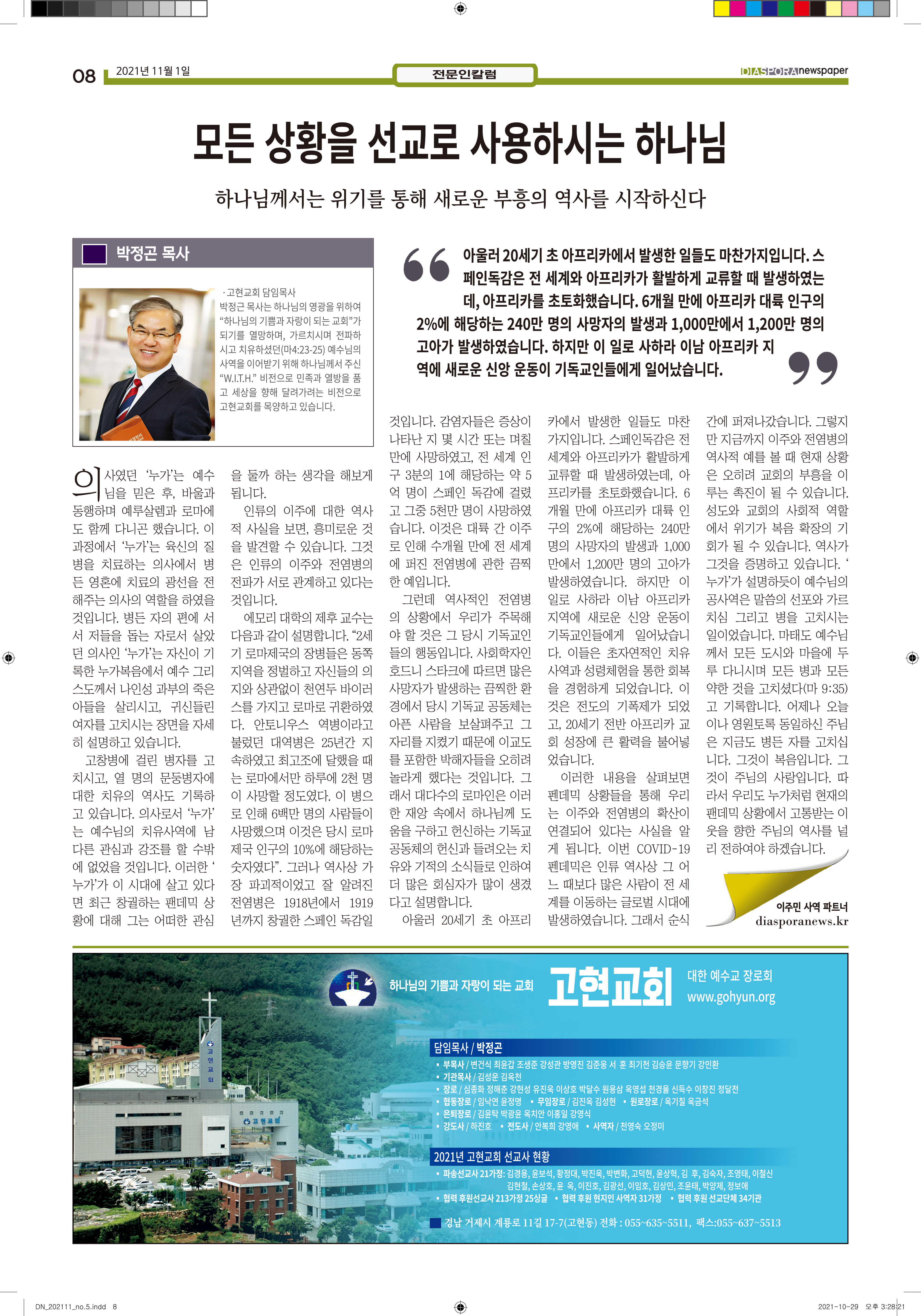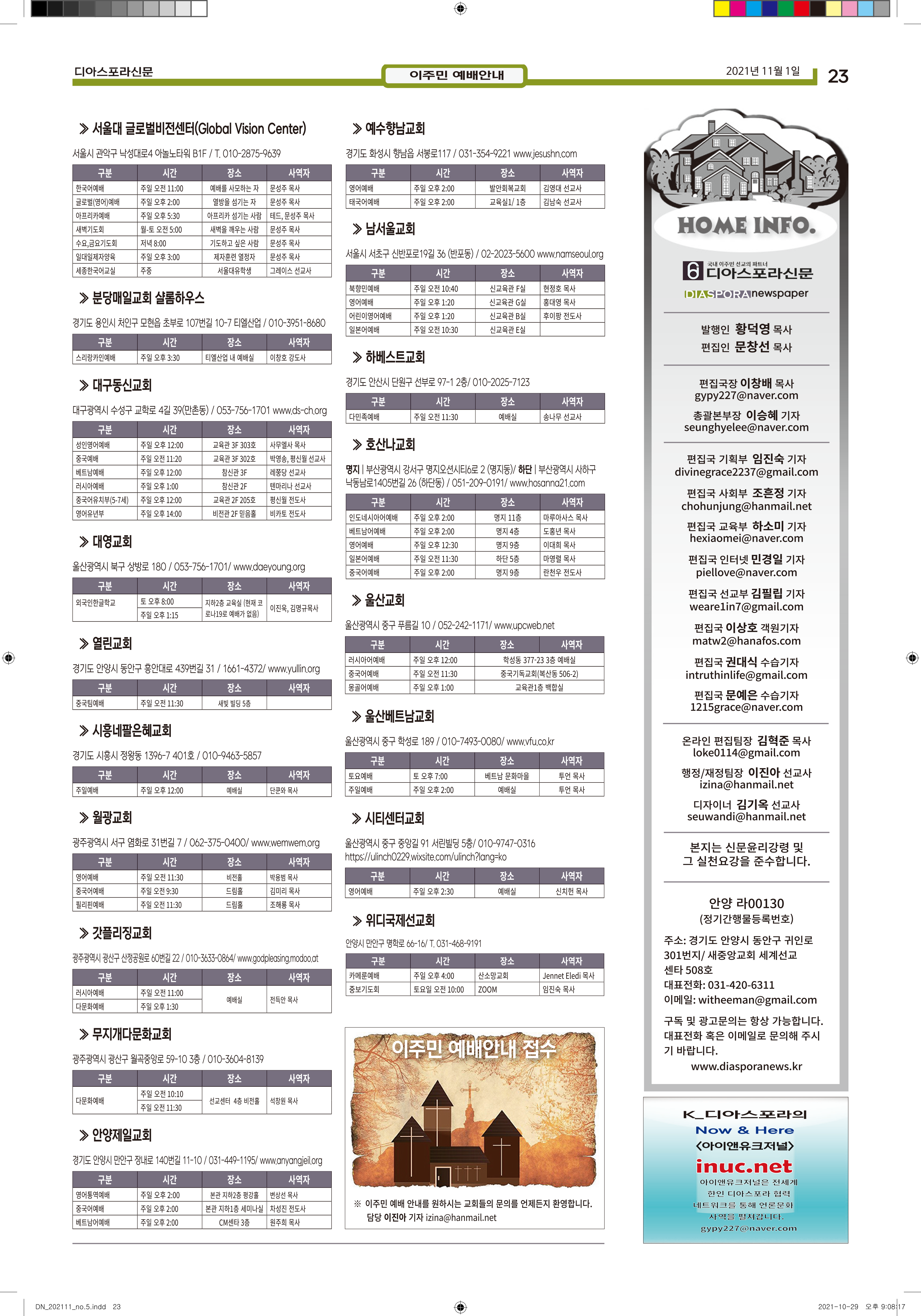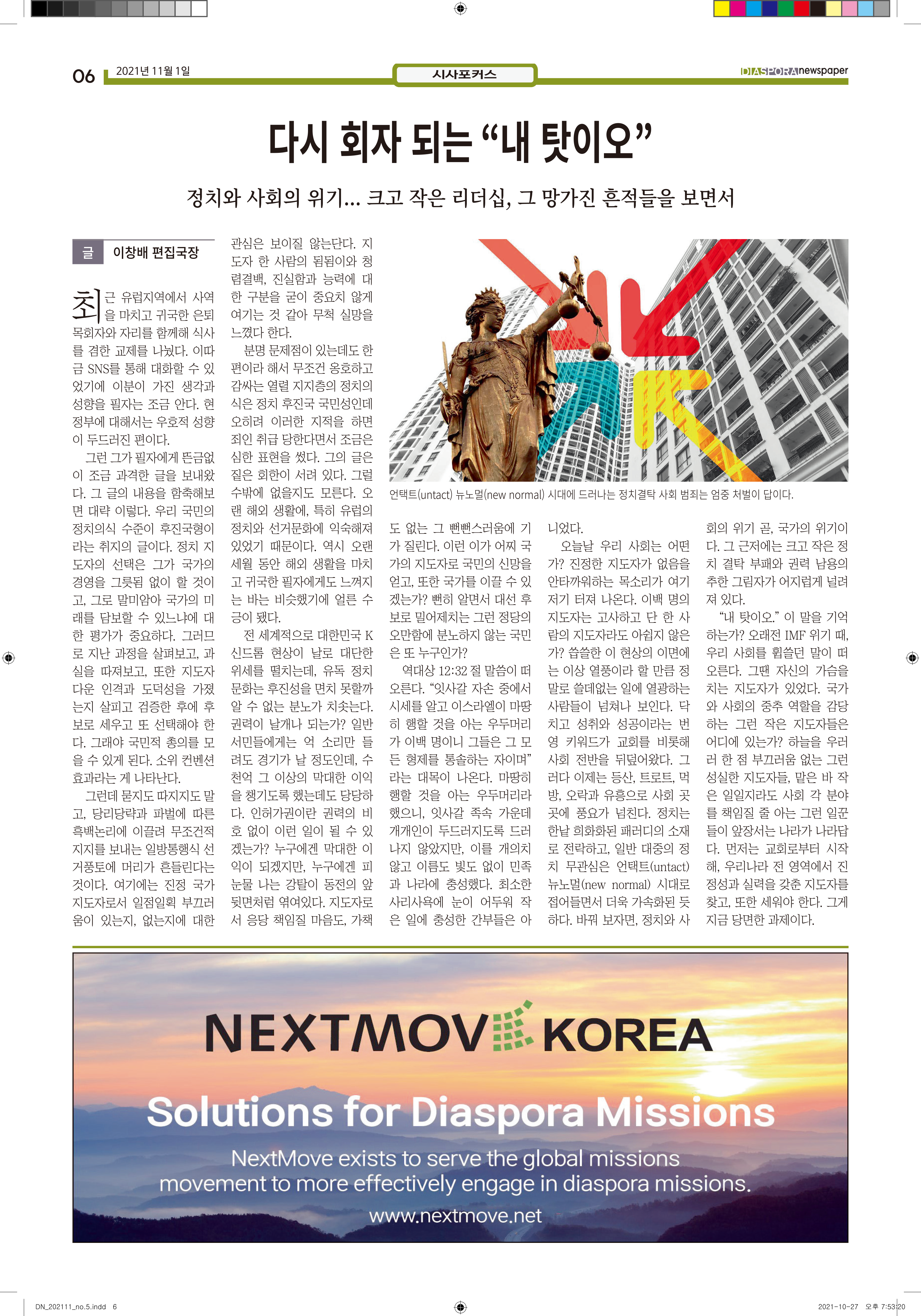 공지 [디아스포라신문] 제 5 호_2021년 11월_우리의 이웃은 모두 안녕하십니까? by 위디국제선교회1 2021. 11. 11. 제 5 호_2021년 11월_우리의 이웃은 모두 안녕하십니까? www.diasporanews.kr 공유하기 게시글 관리 WiThee Mission International 저작자표시 비영리 (새창열림) 관련글 missionNaga2022 MMTS 4P 2기 과정 [디아스포라신문] 제 4 호_2021년 10월_고국을 떠나야 했던 사람들, '난민' [디아스포라신문] 제 3 호_2021년 9월_이주민선교의 핵심 '환대'