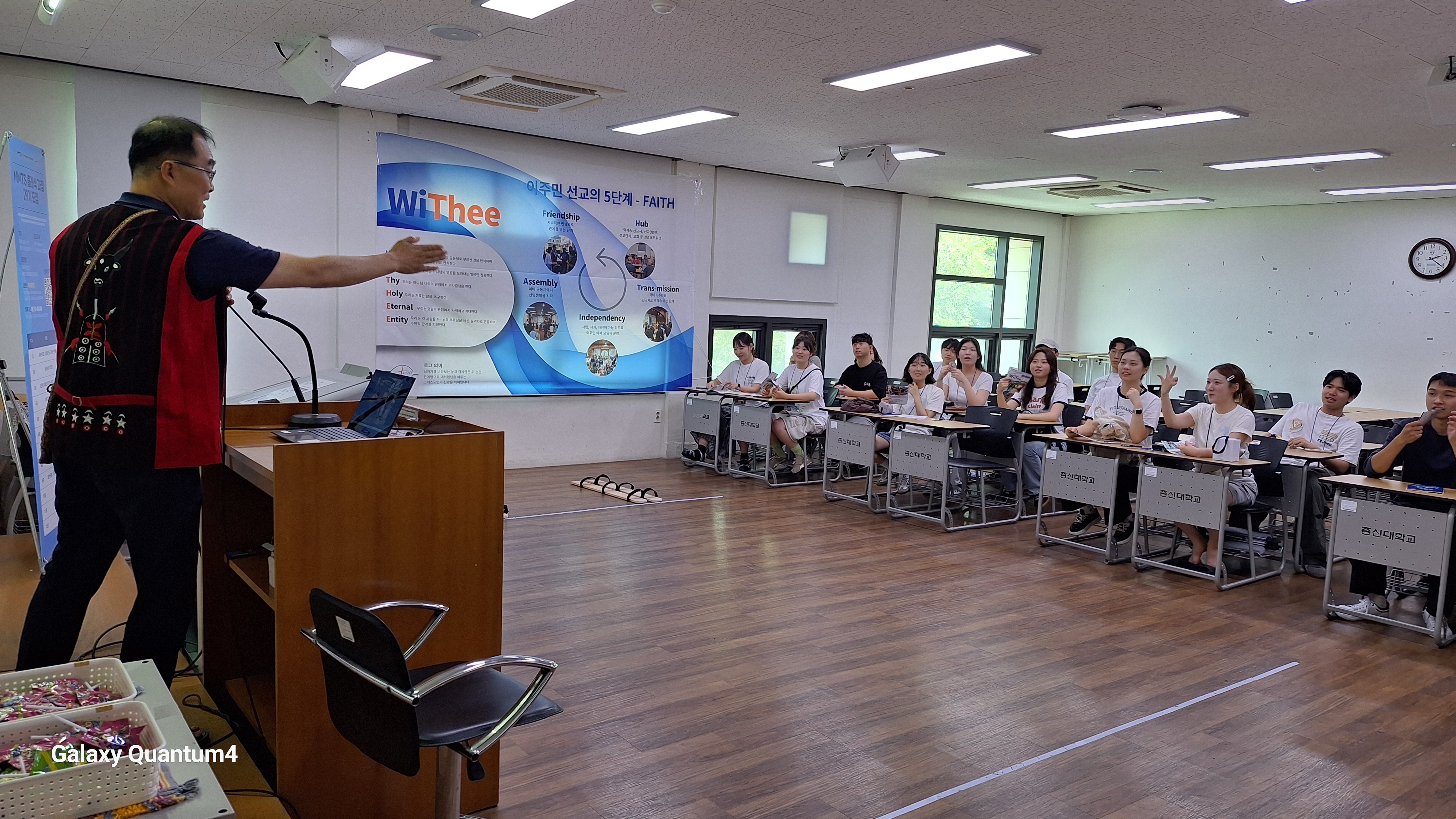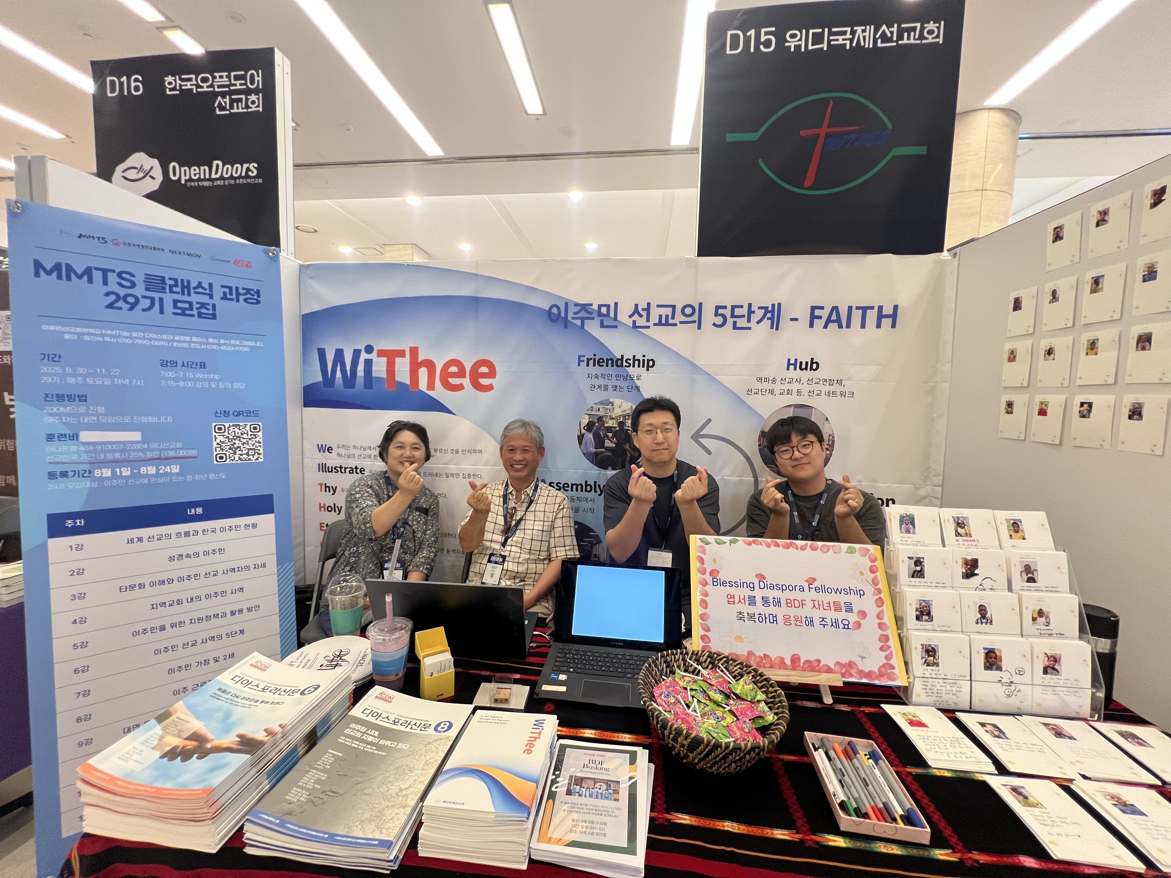 특히 총회(합동) 청소년-청년 선교캠프에서는 ‘WiThee 선교회’ 부스를 운영했습니다. 한국과 세계 각지의 이주민 선교 지형을 알기 쉽게 시각화하고, 로컬 교회와 청년들이 당장 실행할 수 있는 작은 첫걸음들을 제시했습니다. 부스 앞에서 멈춰 서서 질문을 던지는 얼굴들—“우리 교회도 할 수 있을까요?”—그 대화 하나하나가 씨앗이 되어 지역을 바꾸고 문화를 바꾸는 긴 여정으로 이어지리라 믿습니다. 우리는 현장의 언어로, 과장 없이, 그러나 소망을 잃지 않는 톤으로 설명했습니다. 후원으로 마련된 자료 한 장, 배너 한 개에도 사명을 실었습니다.