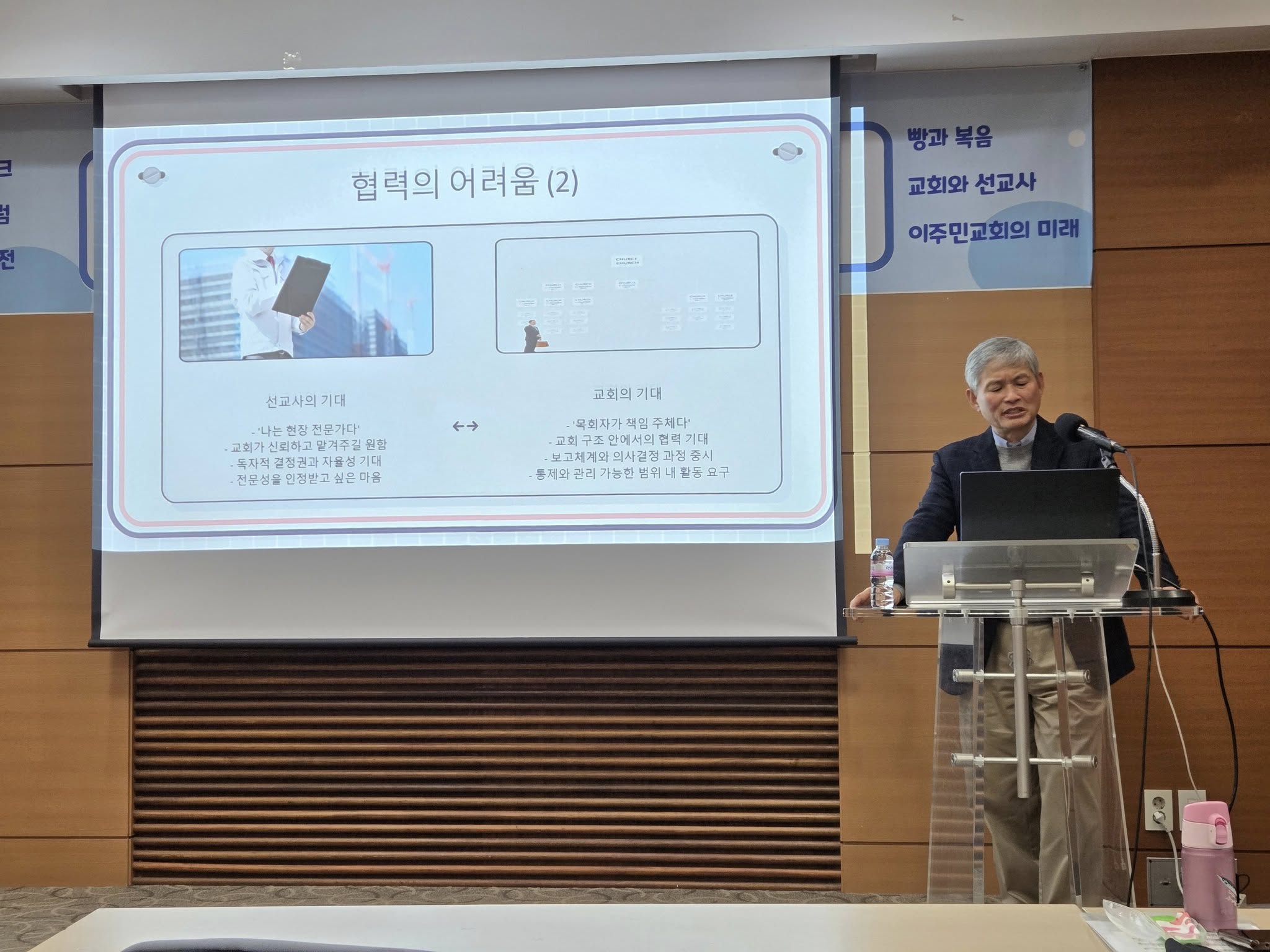 또한 GMF 이주민선교사 수련회에서는 “지역교회가 바라보는 이주민선교는?”이라는 주제로 특강을 전하는 시간이 있었습니다. 해외선교사 출신 이주민 사역자들이 지역교회와 협력하는 데 느끼는 어려움과 고민들이 솔직하게 나누어졌고, 지역교회가 이주민선교를 어떻게 인식하고 있는지, 서로의 기대와 현실의 간극은 무엇인지 함께 살펴보며 앞으로의 동역 방향을 모색하는 의미 있는 시간이었습니다.