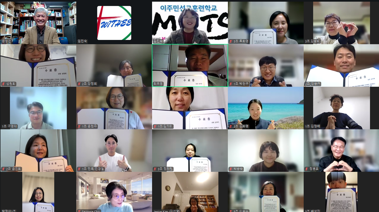 특별히 11월에는 대전 나무아래교회에서 MMTS 클래식 29기와 30기가 함께 모여 대면 모임을 가졌습니다. 이후 각 기수가 준비한 연구 발표를 통해 그동안의 배움이 단순한 이론에 그치지 않고, 자신이 서 있는 지역과 교회의 현실을 분석하고 구체적인 사역 계획으로 정리되는 모습을 볼 수 있었습니다. 이 연구 발표를 마무리로 두 기수의 수료식이 함께 진행되었고, 이주민 선교 현장으로 나아갈 새로운 일꾼들이 세워지는 기쁨의 순간을 함께 누렸습니다. 이런 흐름 속에서, MMTS를 통해 쌓여가는 한 기수, 한 기수의 졸업생들이 디아스포라 리더십의 중요한 토대가 되고 있음을 깊이 실감하게 됩니다.