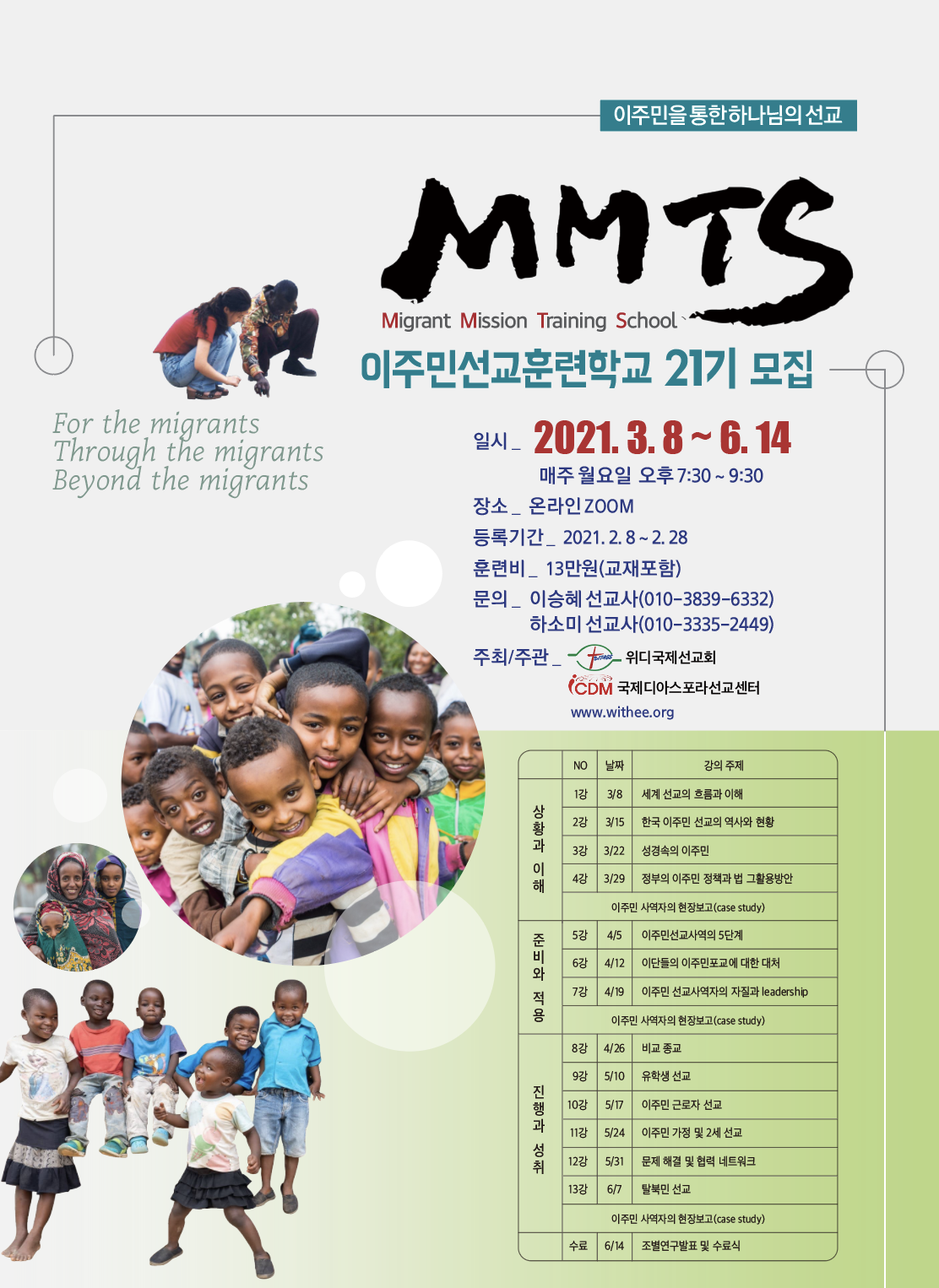 이주민선교학교 신청서 훈련비 계좌번호 (위디선교회 하나은행 464-910007-22804)