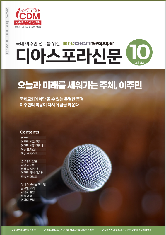 디아스포라뉴스/2024년 이후 E-Book 제52호_25년 10월 by 위디국제선교회1 2025. 10. 11. 공유하기 게시글 관리 WiThee Mission International 저작자표시 비영리 (새창열림) 관련글 제54호_25년 12월 제53호_25년 11월 제51호_25년 9월 제50호_25년 8월