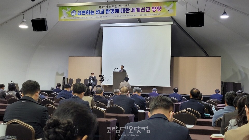 고신총회세계선교후원교회협의회(대표회장 박정곤 목사/이하 선후협) 제12회 선교포럼이 4일 오후 1시 30분 경주 켄싱턴호텔 프리스틴 홀에서 열렸다. “급변하는 선교 환경에 대한 세계선교 방향”이라는 주제로 열린 이번 포럼은 선후협 대표회장 박정곤 목사의 사회로 개회예배를 드리며 시작되었다.