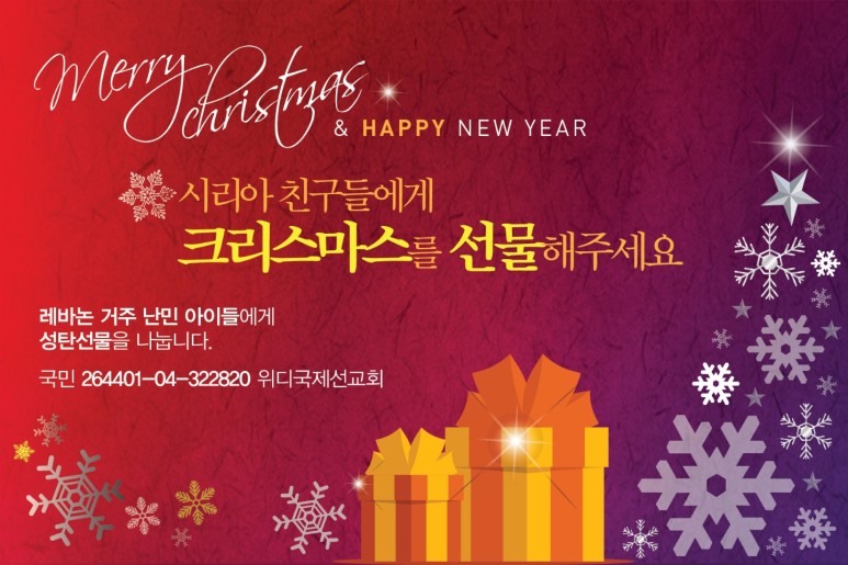 인류를 구원하기 위해 사람의 몸으로 오셔서 우리와 함께 하시는 임마누엘 예수탄생의 의미를 중동의 아이들에게 전하고 나누는 크리스마스가 되면 좋겠습니다.
