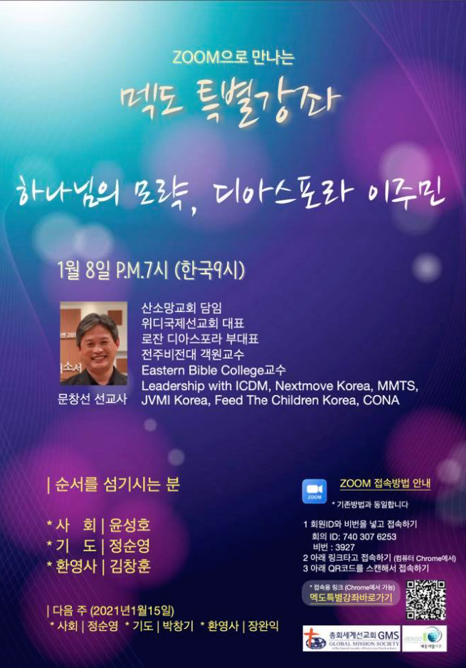 #5. 비록 온라인 모임이 대부분이기는 하나 하나님께서 새해에 참으로 많은 일들을 하게 하십니다. 한국세계선교협의회 산하 KIMA(한국이주자선교협의회)의 활동, 로잔 산하 GDN활동, 올해 10월에 있을 빌리그레이험 국내외국인선교대회 준비, 선교한국랠리대회 참여, MMTS 21기준비 등 후원자님의 기도와 협력이 이 모든 일들을 감당하며 더욱 힘을 얻게 합니다. 특히 MMTS21기는 12월과 1월의 준비과정을 통해 이번 주중 위디홈페이지에 신청 링크를 올리고 훈련자 모집에 들어갑니다. 코로나 영향으로 대형교회들의 이주민선교에 대한 문의와 상담이 많았습니다. 이들의 참여도기대가 됩니다.