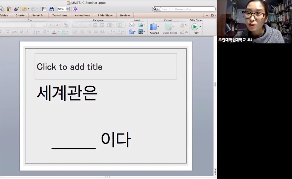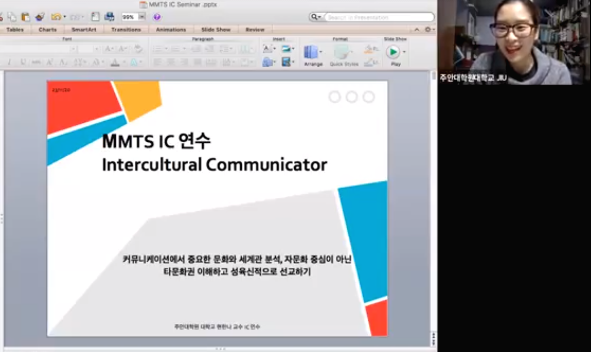 2020년 11월 23일(월) MMTS 심화과정 2기 일곱번째 강의가 있었습니다. 7강의 주제는 "Intercultural Communicator"(Prof. Hanna Hyeon)이었습니다.