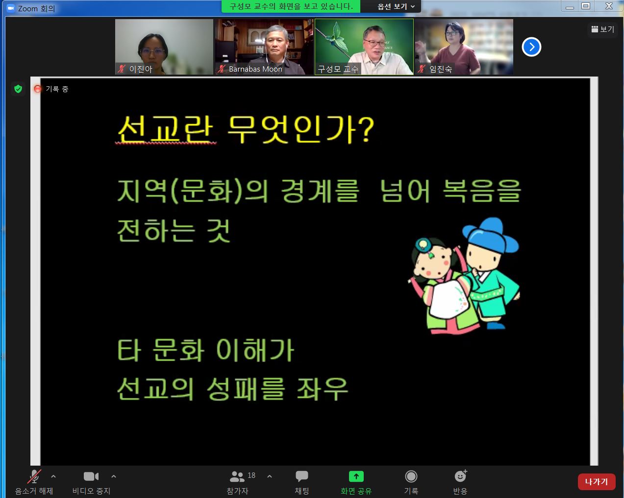 구성모 교수님께서 "타문화와 타종교" 주제로 세계에서 동질성(homogeneity)이 가장 강한 한국인이라 할 수 있는데 다름의 사람들을 섬기려고 하는 훈련생들을 향한 격려로 강의를 시작해주셨습니다.