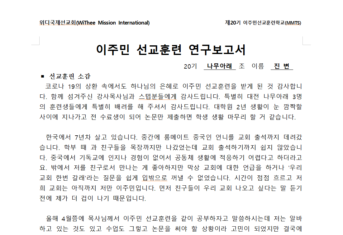 위디선교회 문창선대표 /  MMTS 20기 이승혜 코디