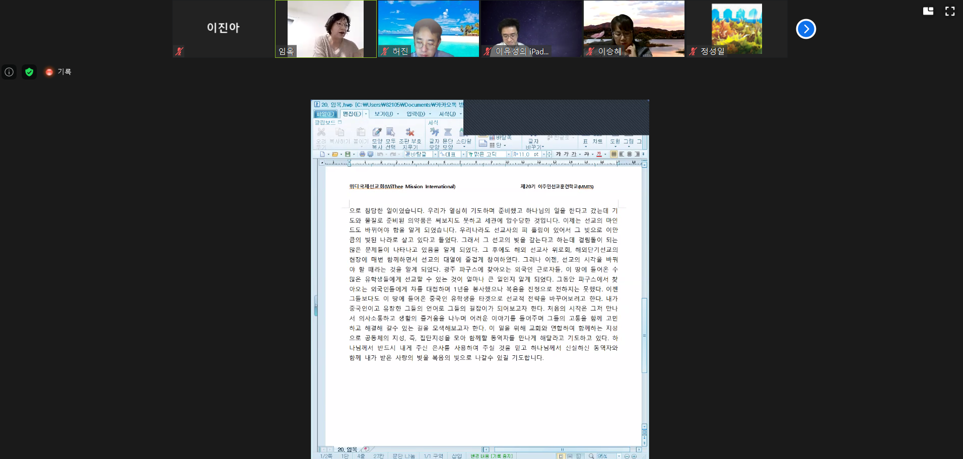 영상 ------- 로잔디아스포라 온라인 회의 2020