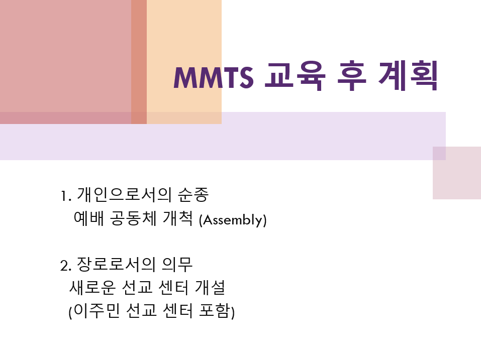MMTS 20기 수료자 명단 / 수료자 대표 김민주선교사