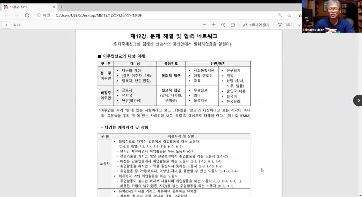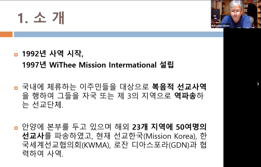 MMTS 20기의 마지막 강의인 문제해결 및 협력 네트워크”(문창선 선교사)위디국제선교회의 구체적인 소개, 이주민 선교 네트워크로의 초대의 시간이 있었습니다.