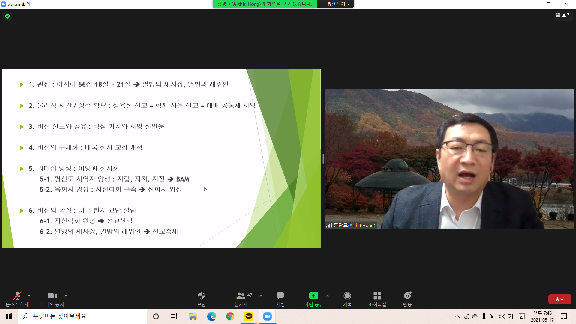2021년 5월 17일(월) MMTS 21기 열번째 시간으로 홍광표 교수님의 "이주근로자 선교"에 관한 강의가 있었습니다.