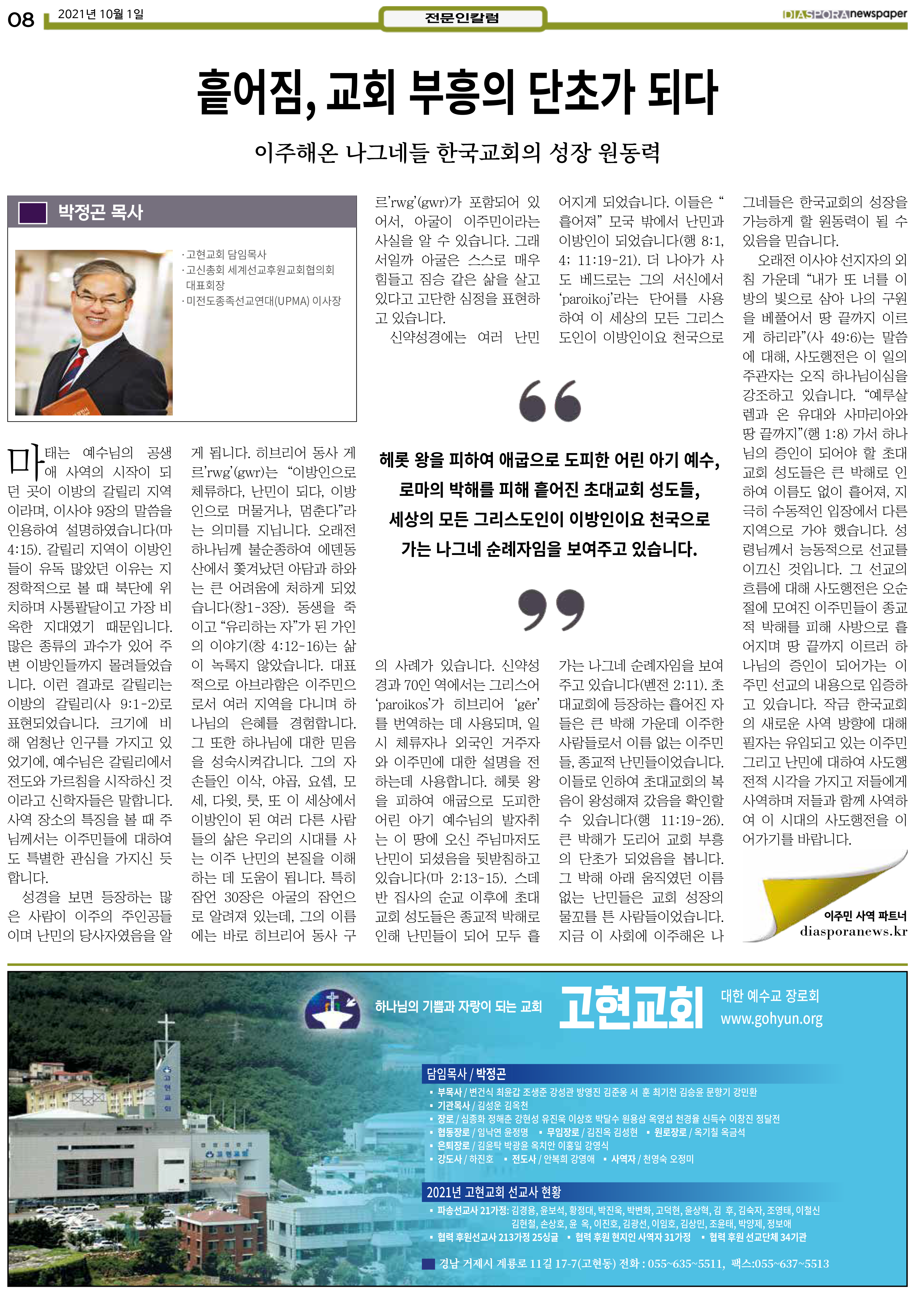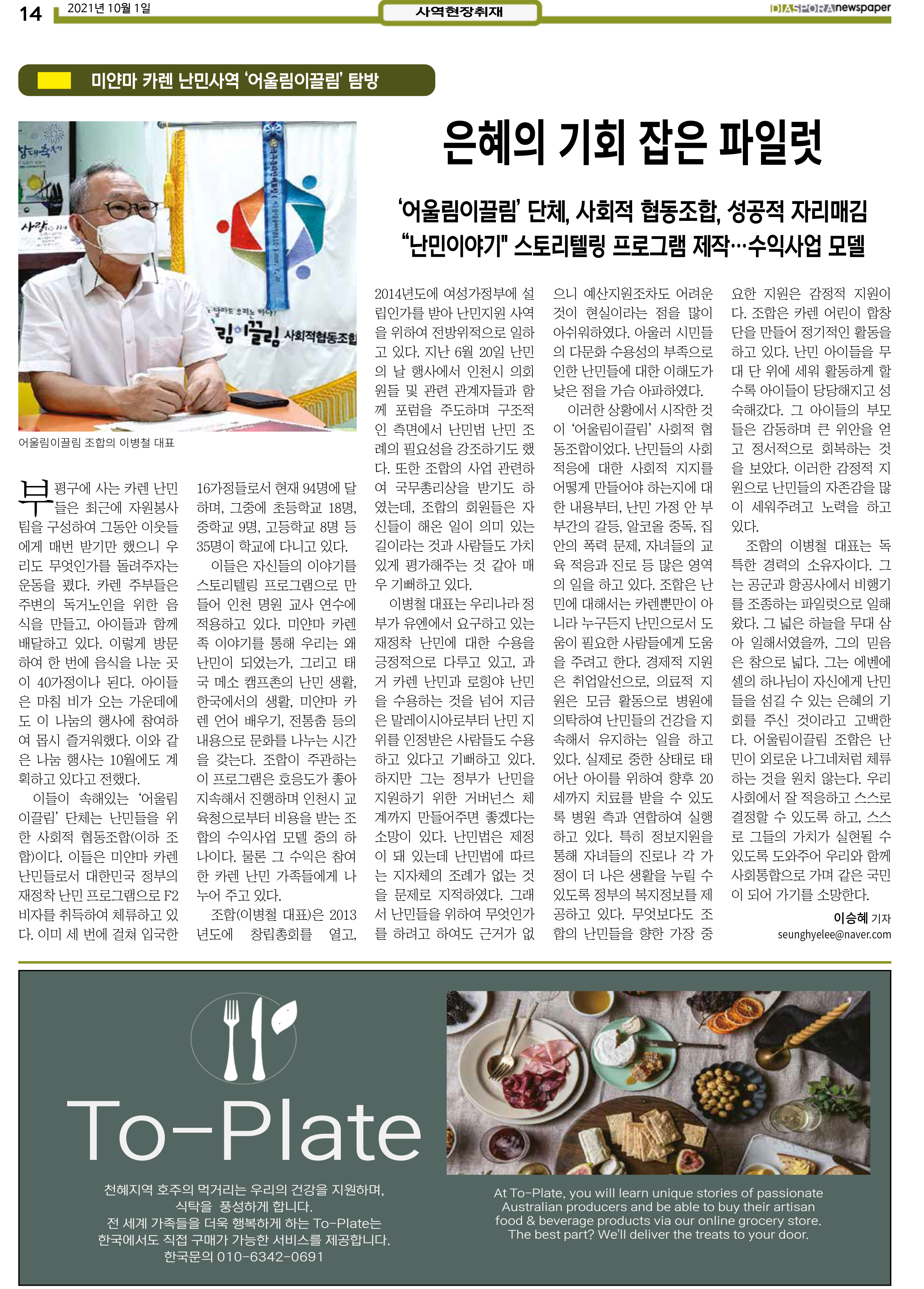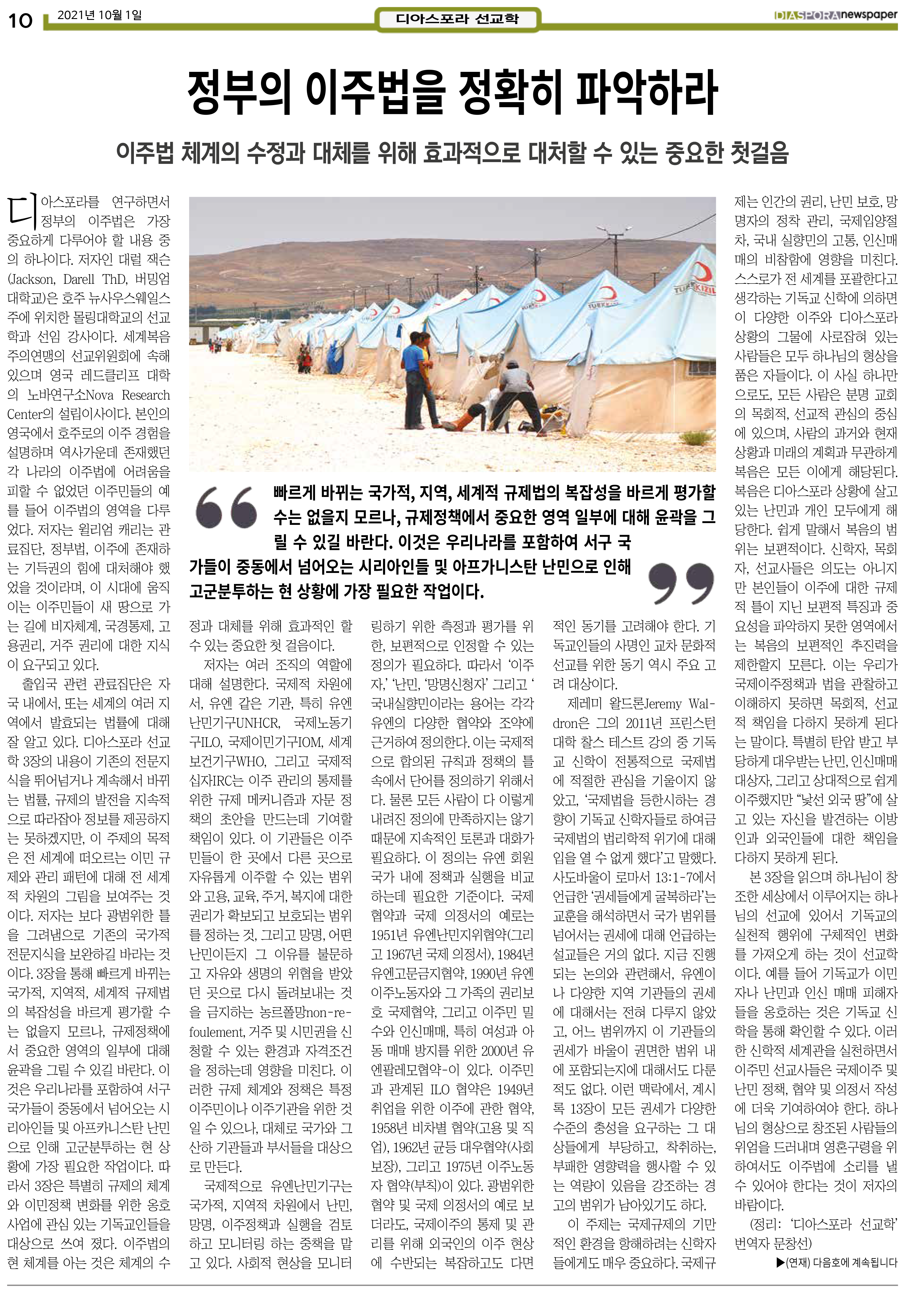 공지 [디아스포라신문] 제 4 호_2021년 10월_고국을 떠나야 했던 사람들, '난민' 위디국제선교회1 2021. 10. 14. 20:33 제 4 호_2021년 10월_고국을 떠나야 했던 사람들, '난민' www.diasporanews.kr 저작자표시 비영리 (새창열림)